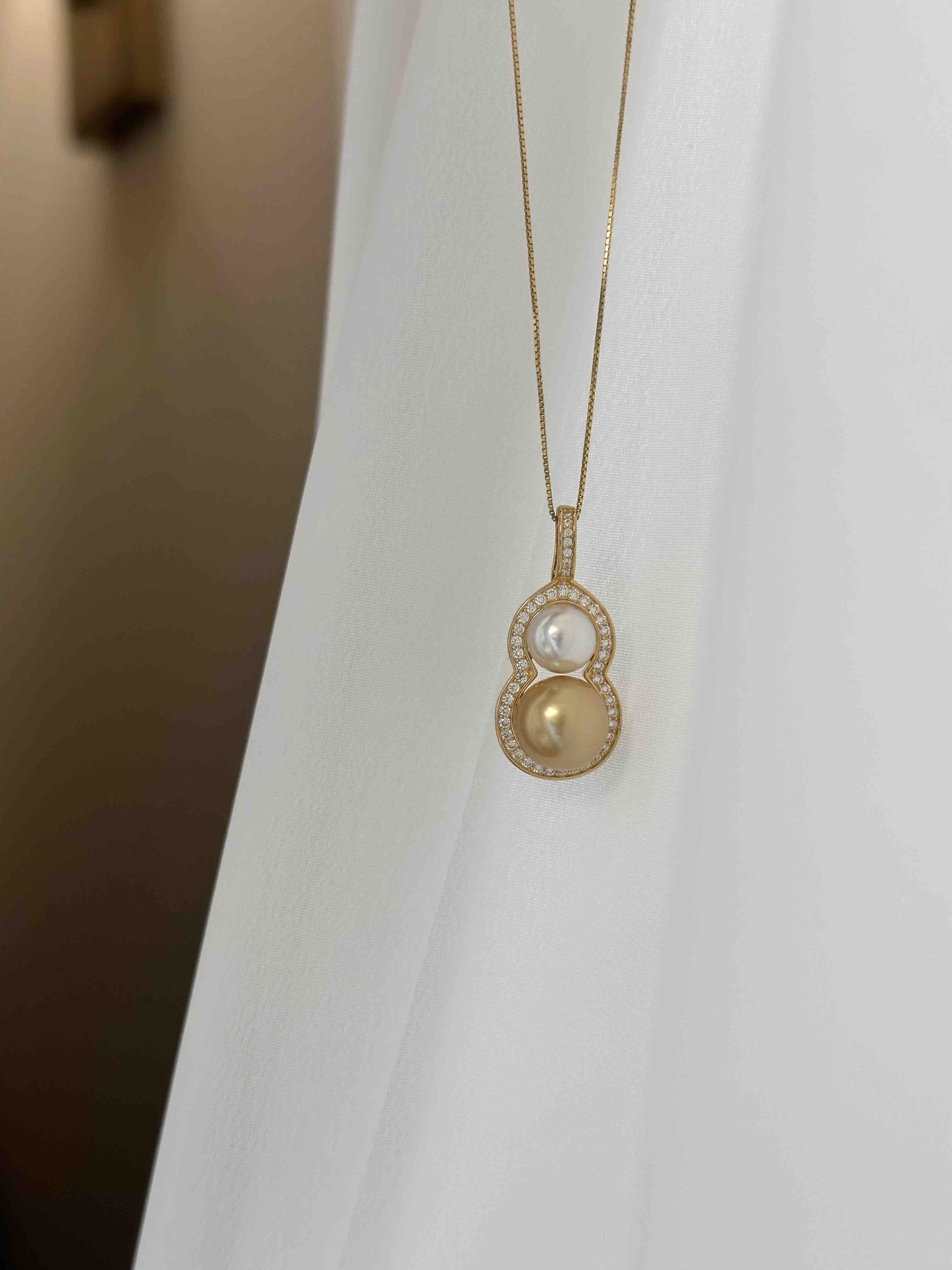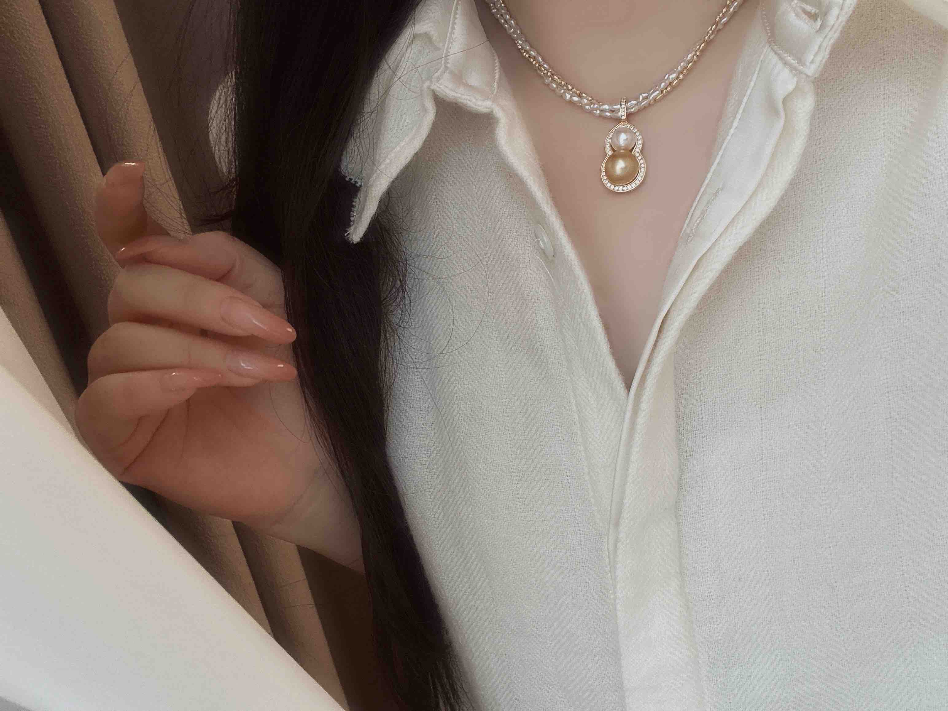 Akoya的白月光光泽,搭配浓金南洋金珠的暖润,温柔贵气,适配所有温柔穿搭