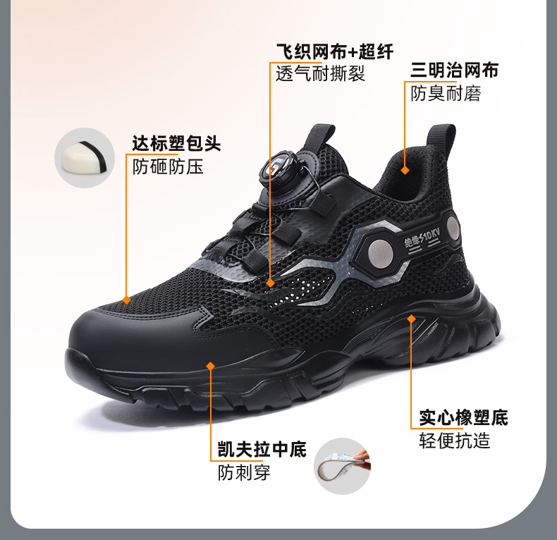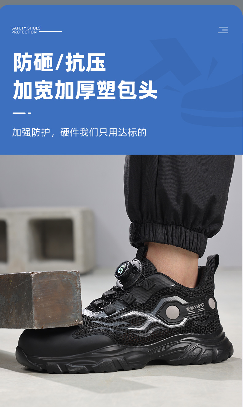 2025夏季绝缘10KV男士劳保鞋轻便橡塑底钢头防砸防刺穿舒适透气工作鞋