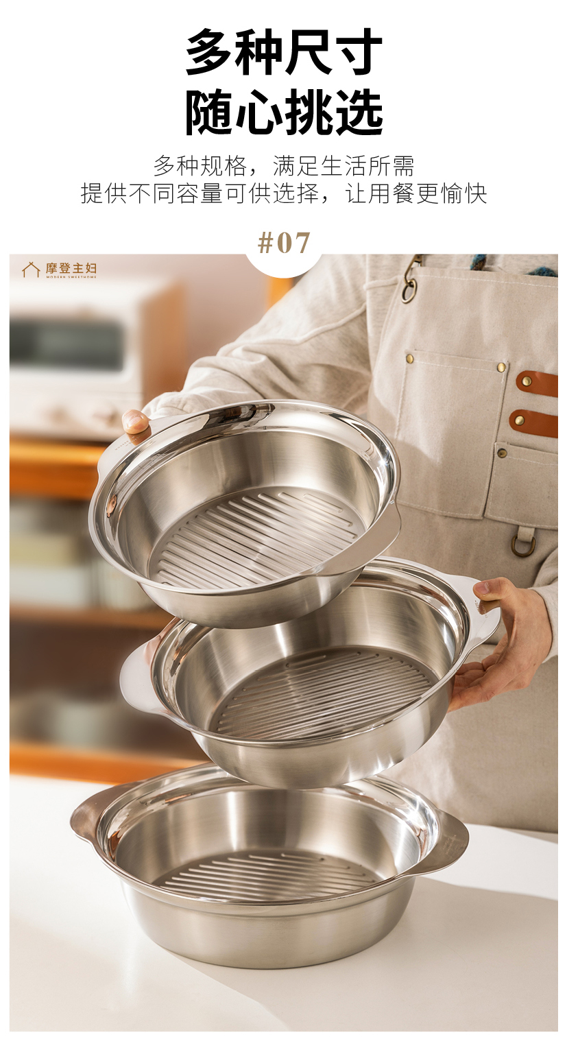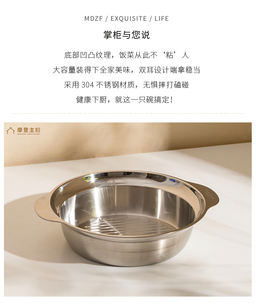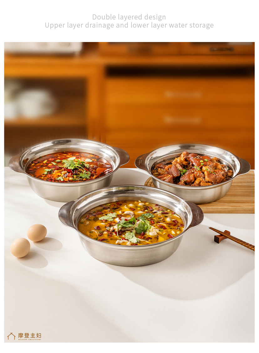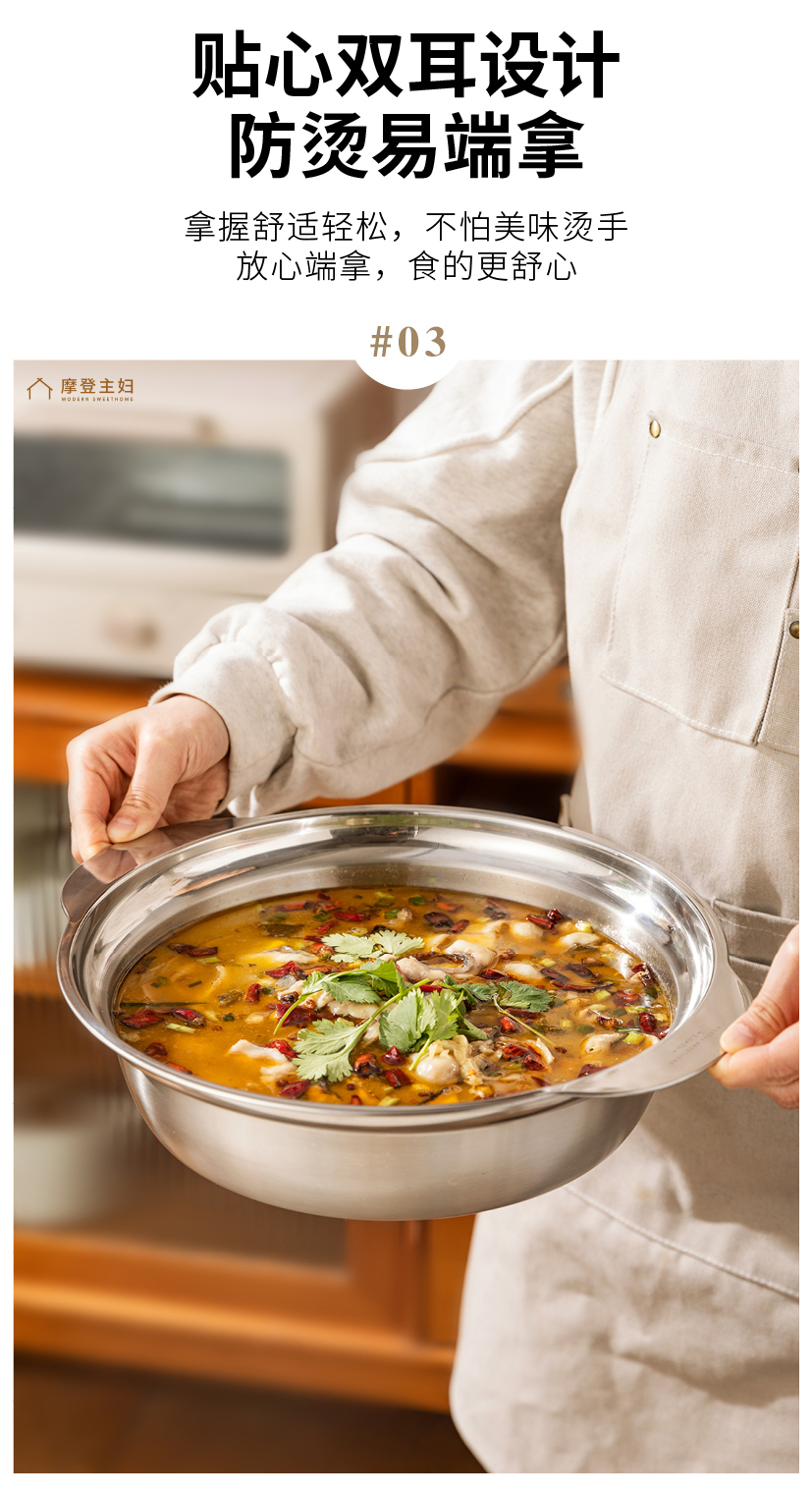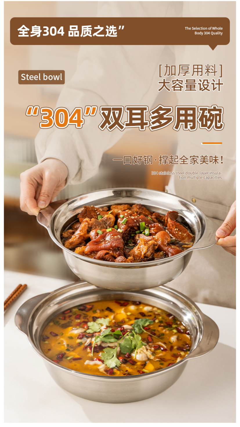 摩登主妇304不锈钢碗酸菜鱼大盆碗家用汤盆水煮鱼火锅盆双耳汤碗