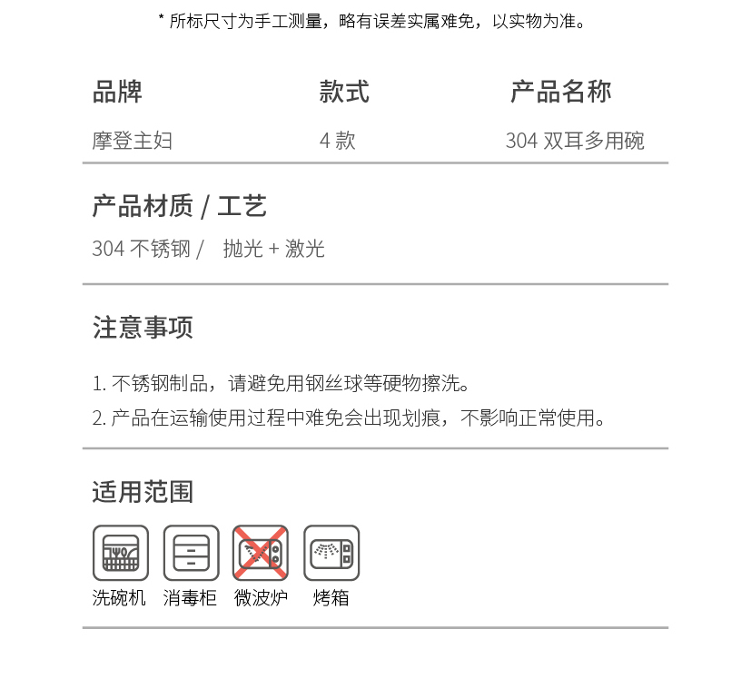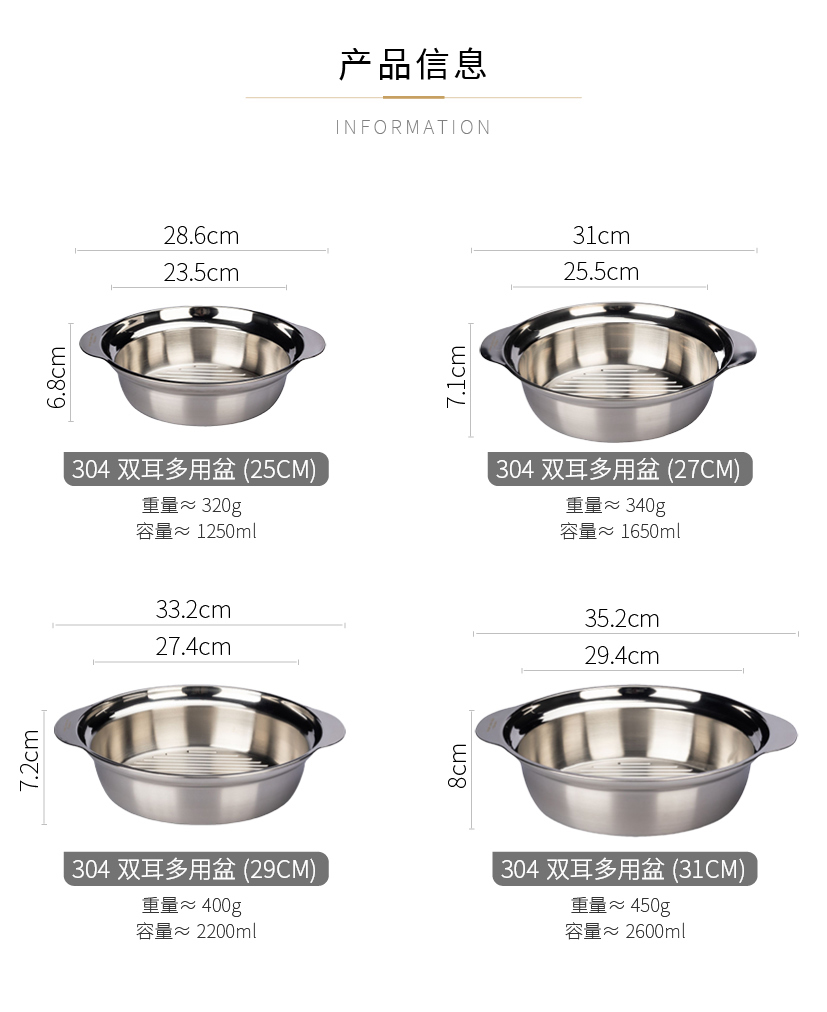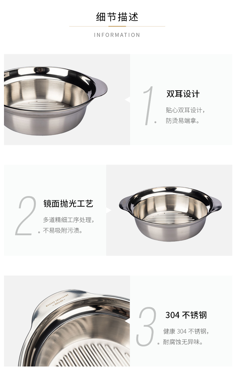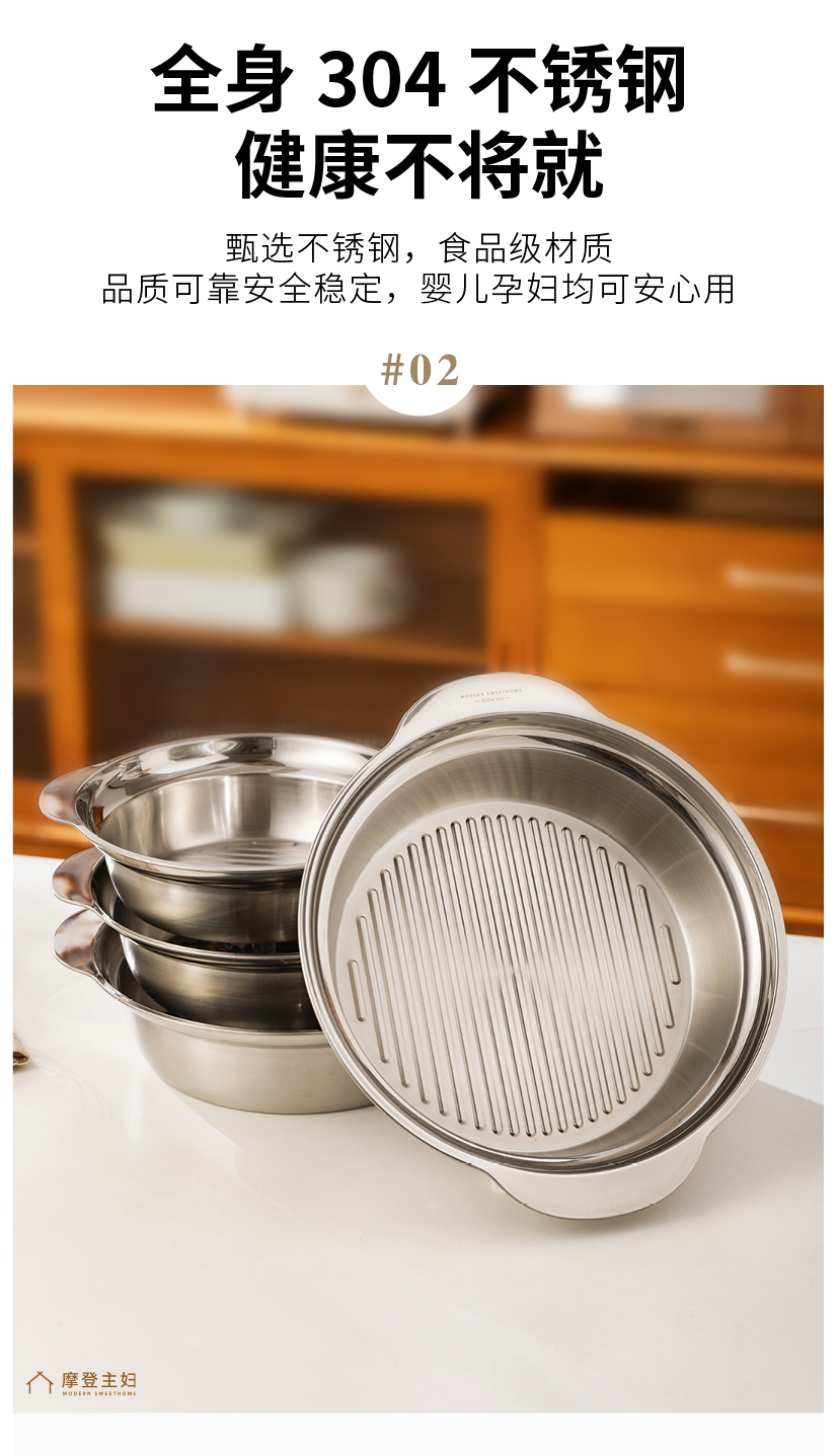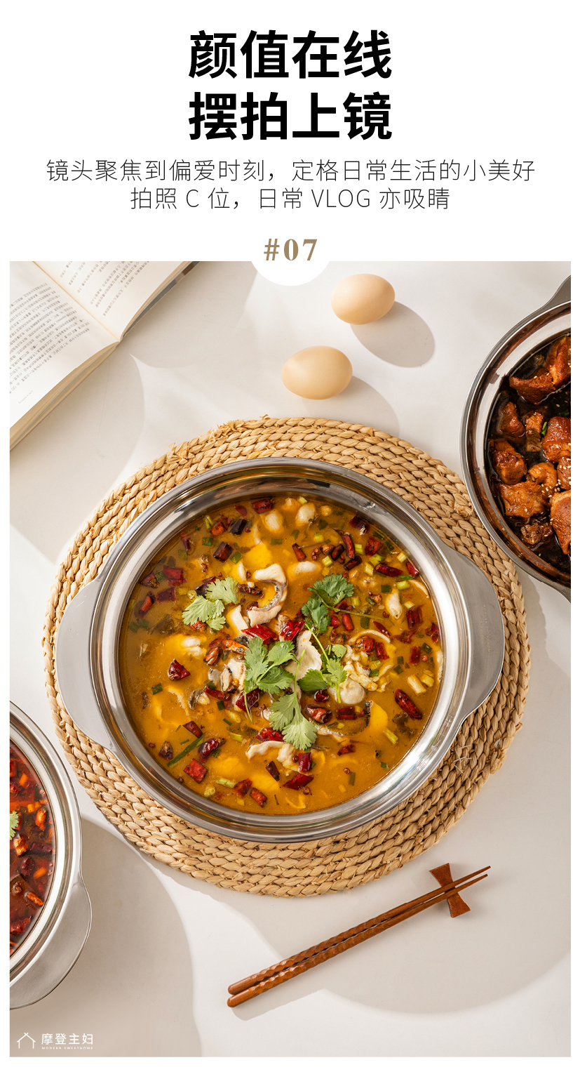 摩登主妇304不锈钢碗酸菜鱼大盆碗家用汤盆水煮鱼火锅盆双耳汤碗