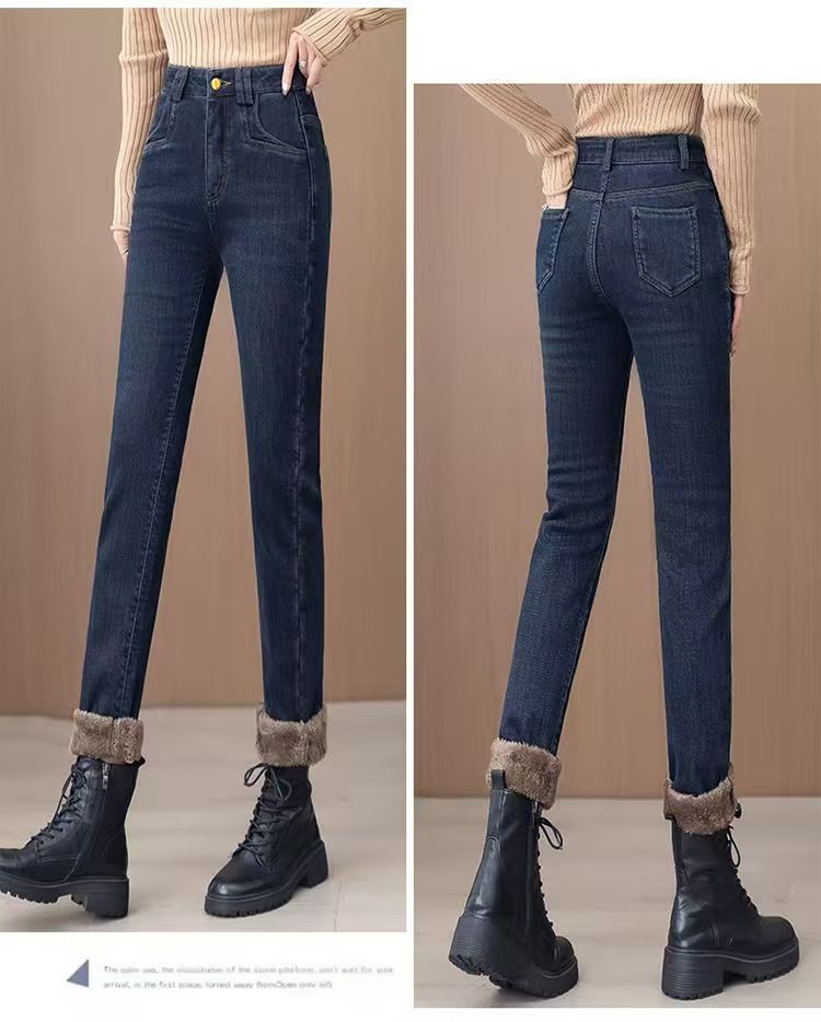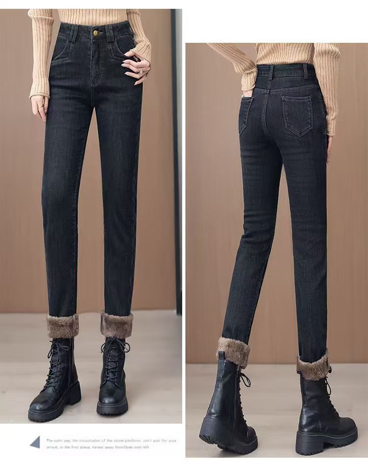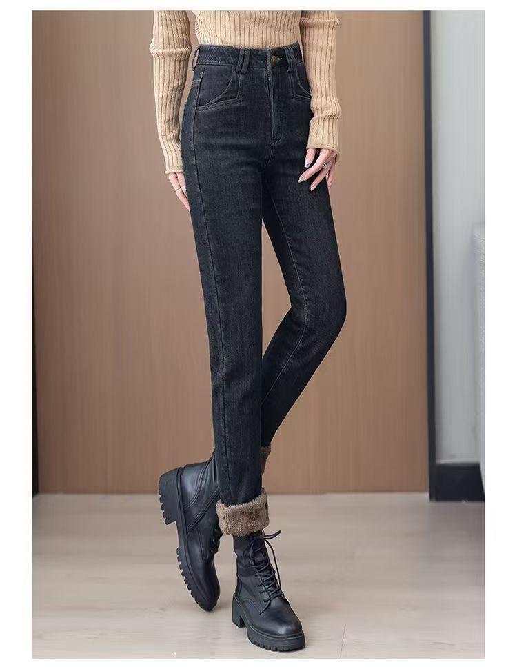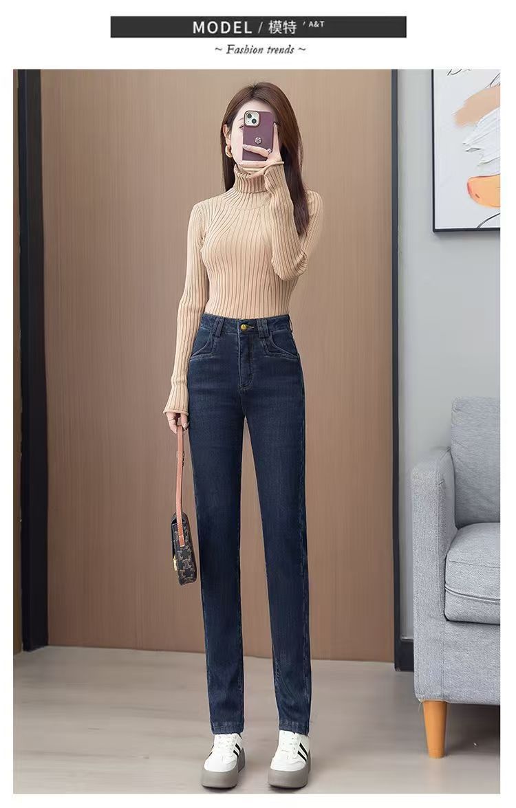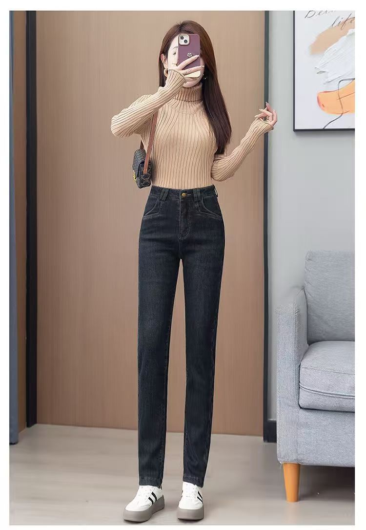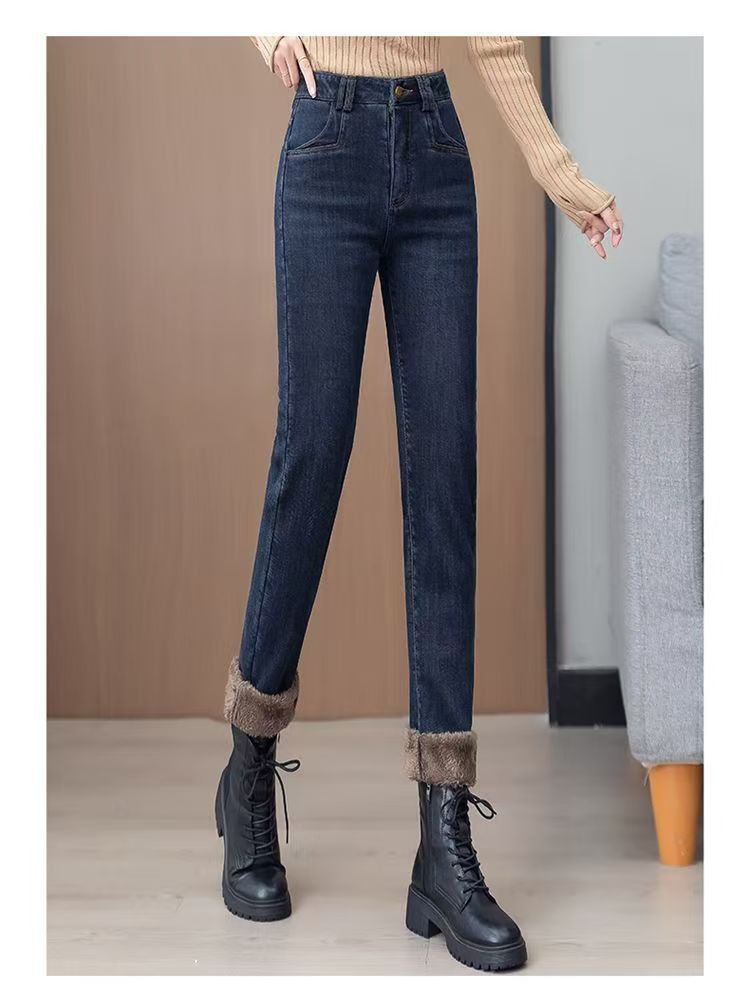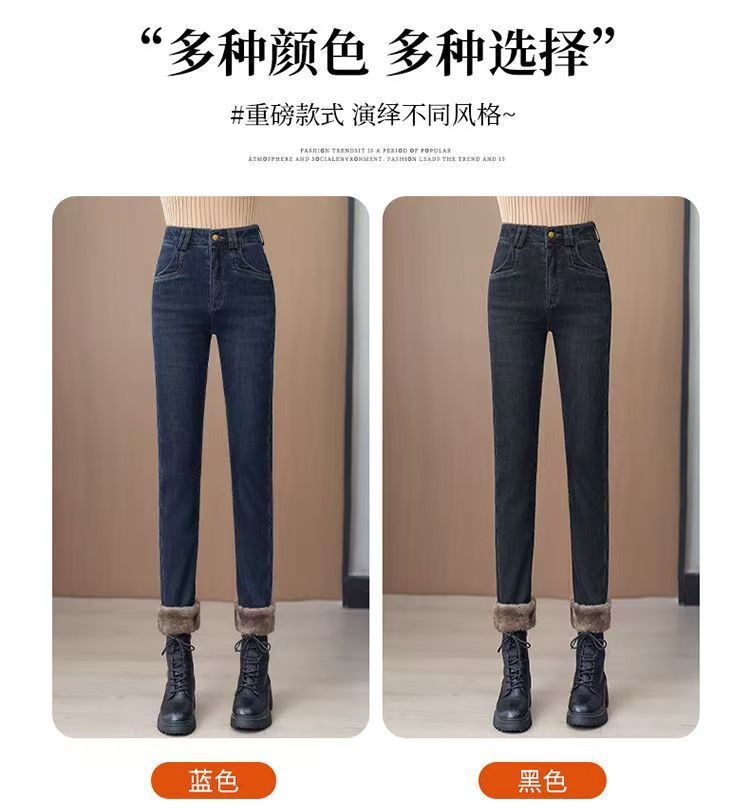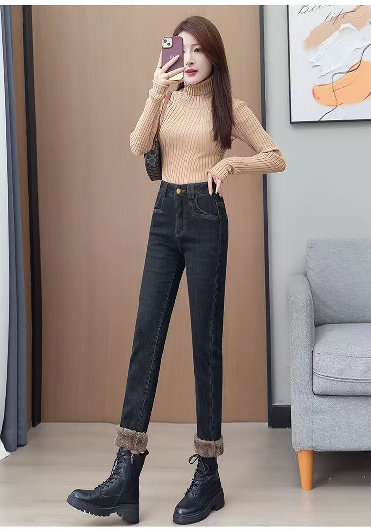 百媚生 羊羔绒保暖小脚裤高腰加绒弹力修身牛仔裤5829 商品图0