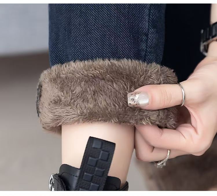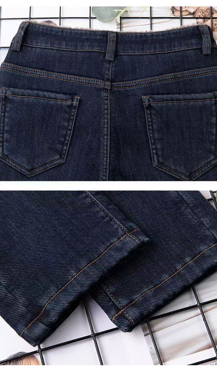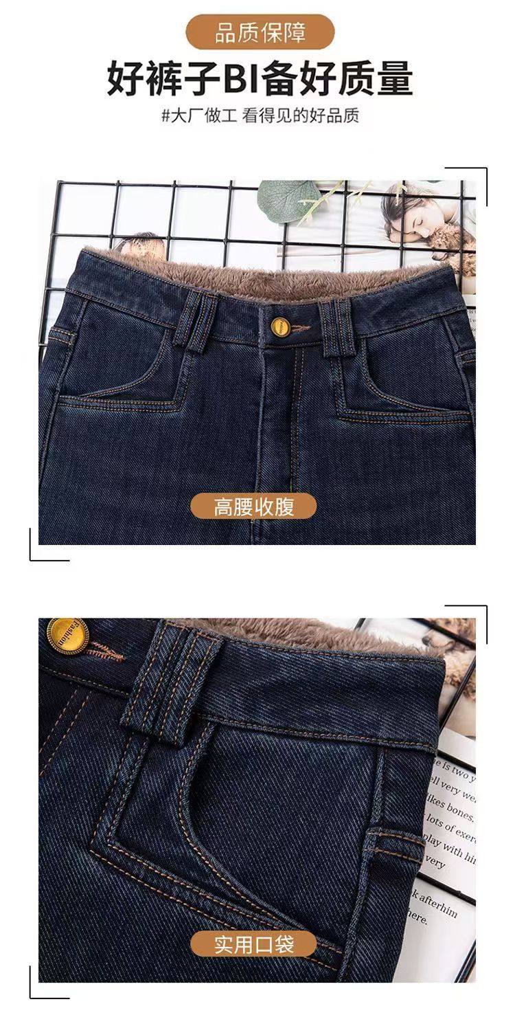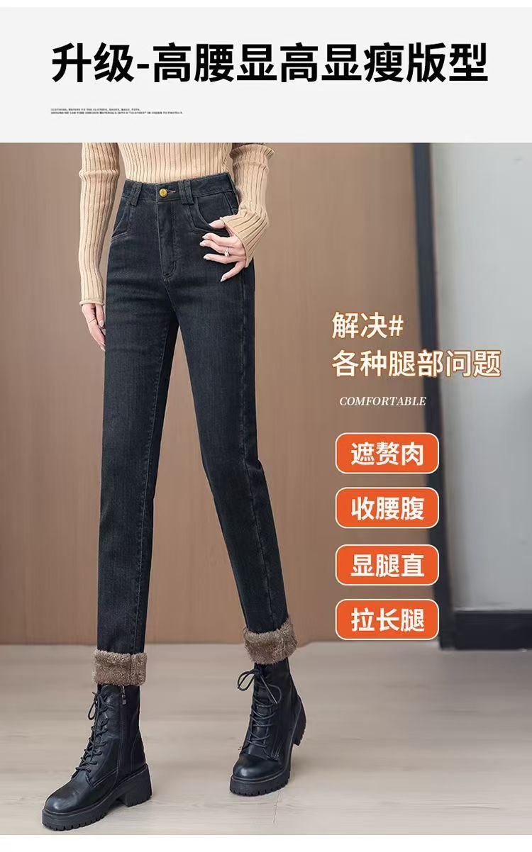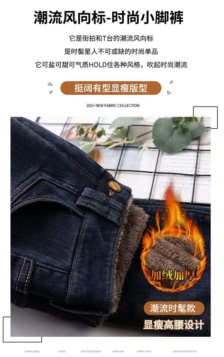 百媚生 羊羔绒保暖小脚裤高腰加绒弹力修身牛仔裤5829 商品图4