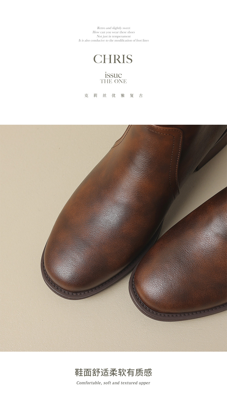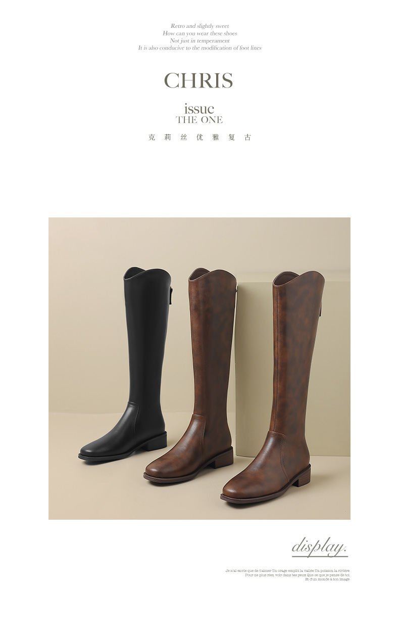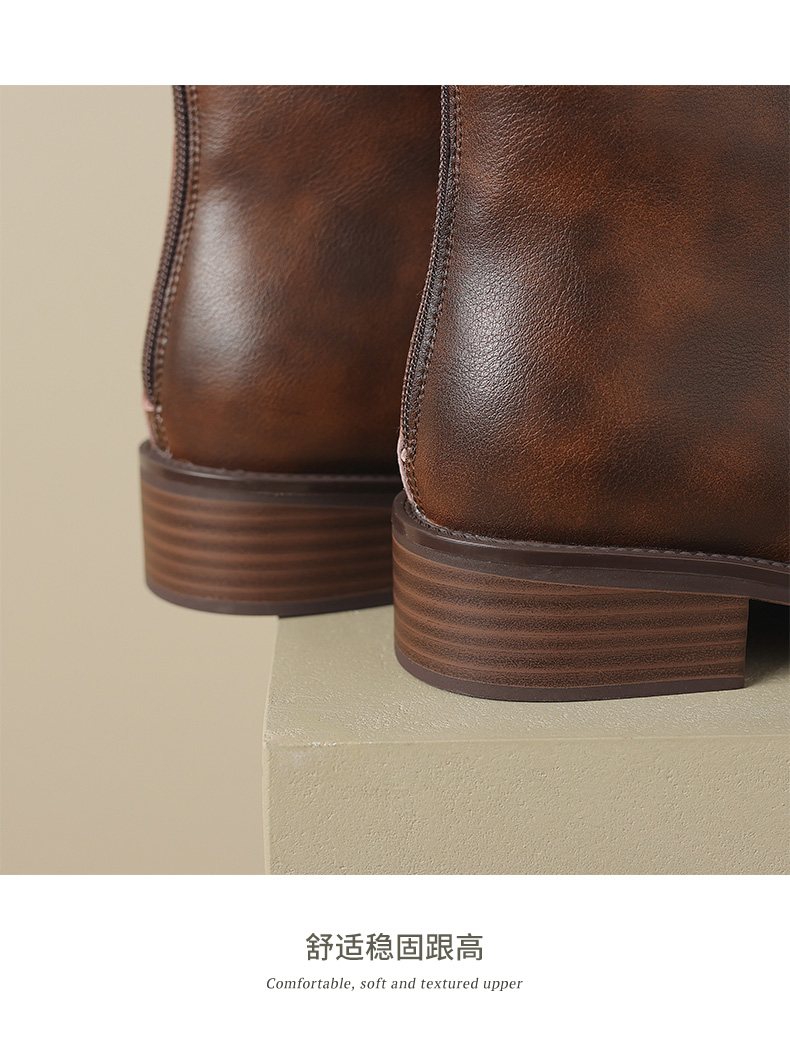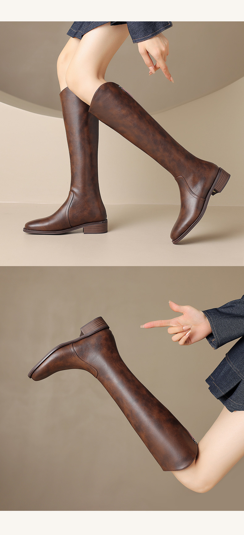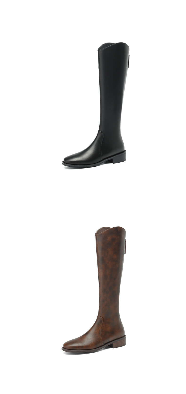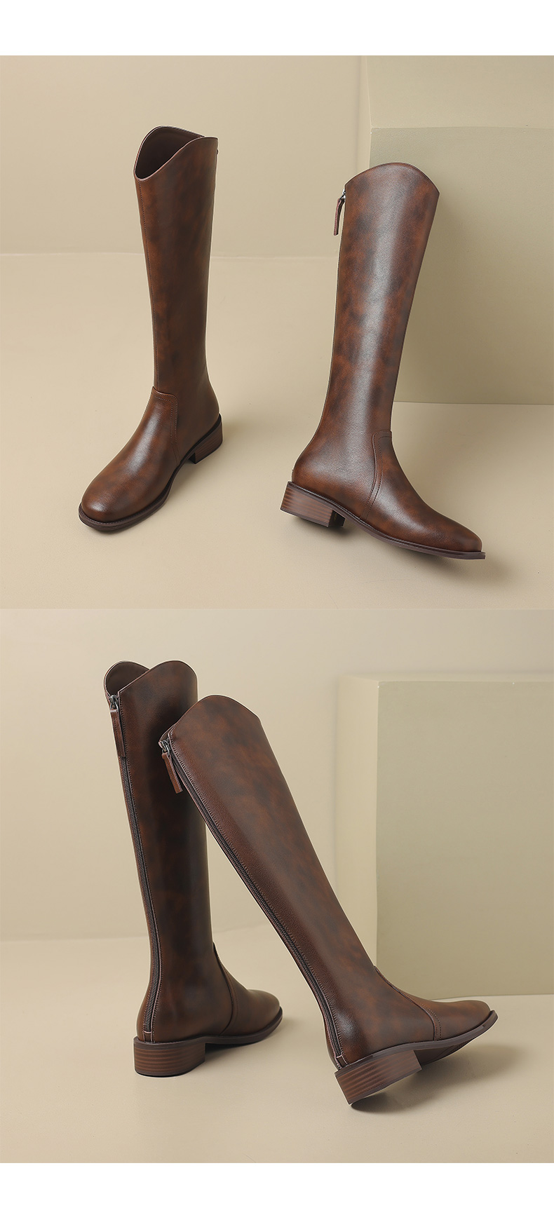 时尚百搭,加绒保暖全真皮高筒靴低跟圆头骑士靴牛皮大小筒长靴YLD-X972