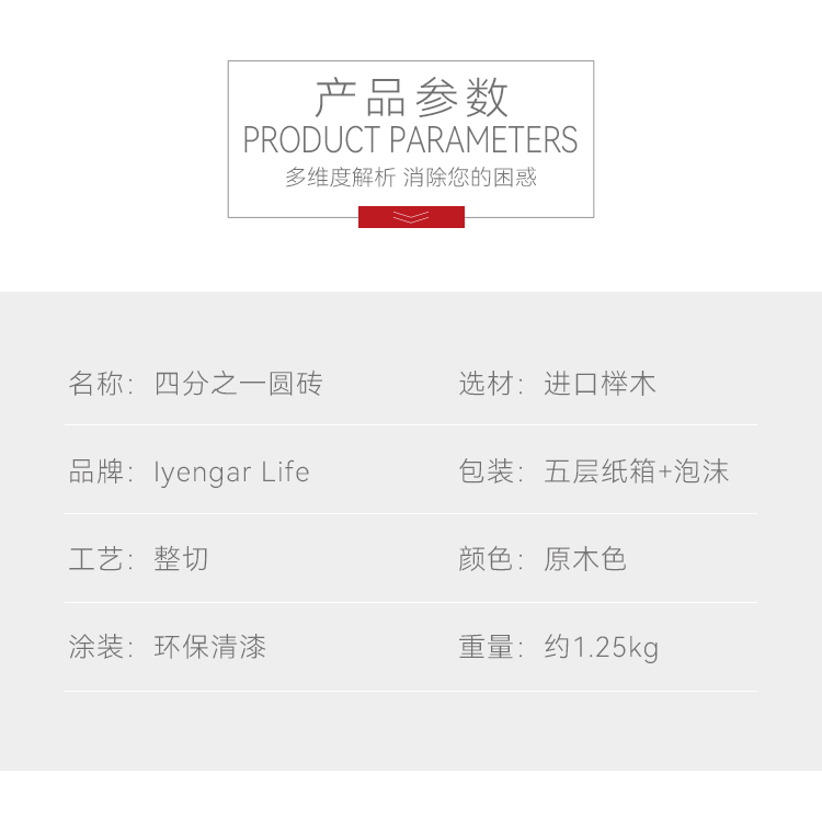 艾扬格 Life 四分一圆砖/圆弧砖/瑜伽辅具