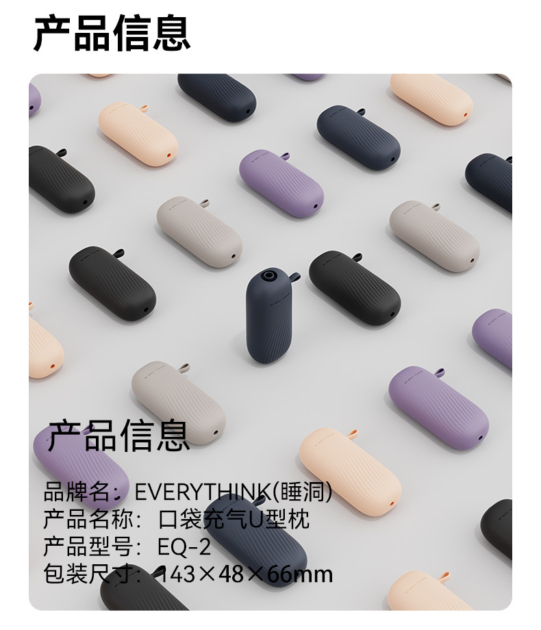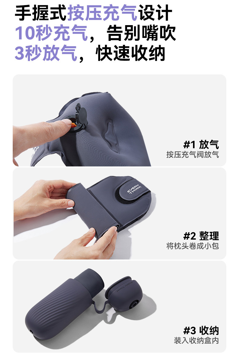 【新品】中国EVERYTHINK睡洞充气颈枕 EQ2深蓝色