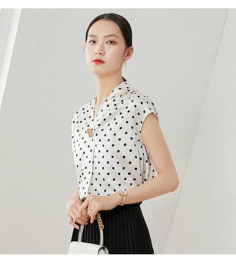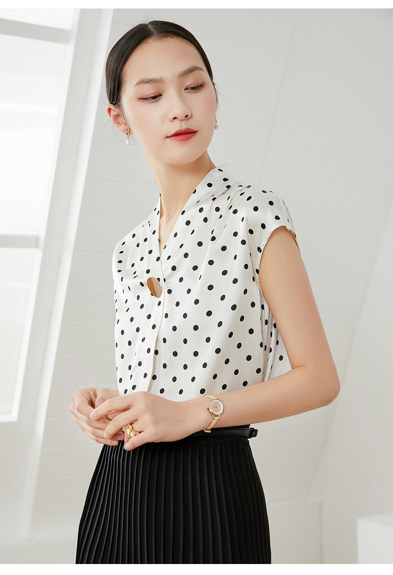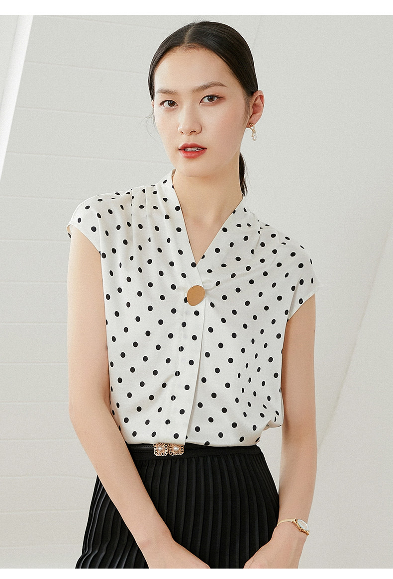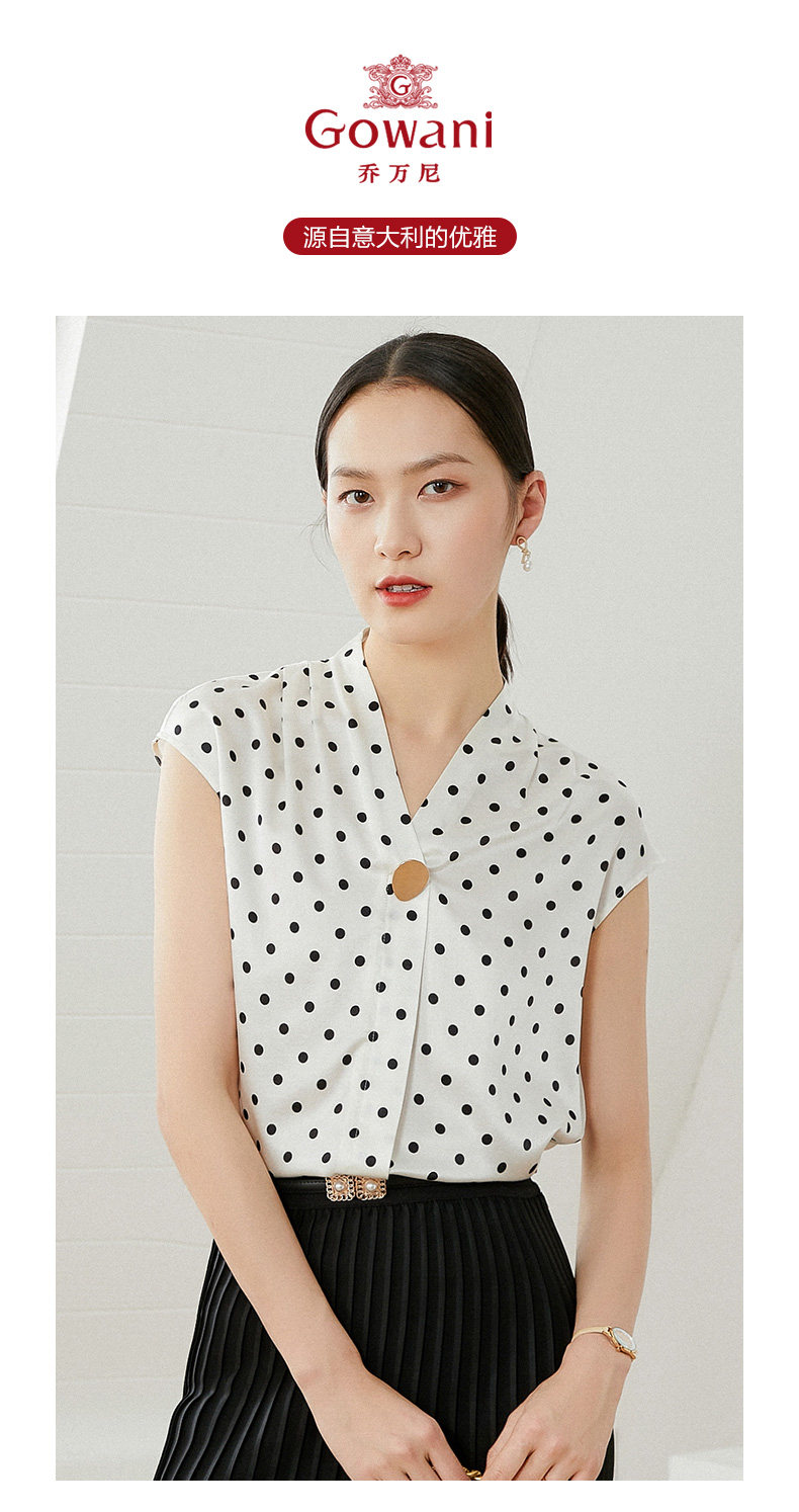 乔万尼新款真丝衬衫V领优雅大气波点衬衣EI2C831