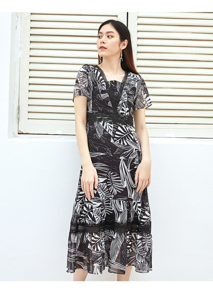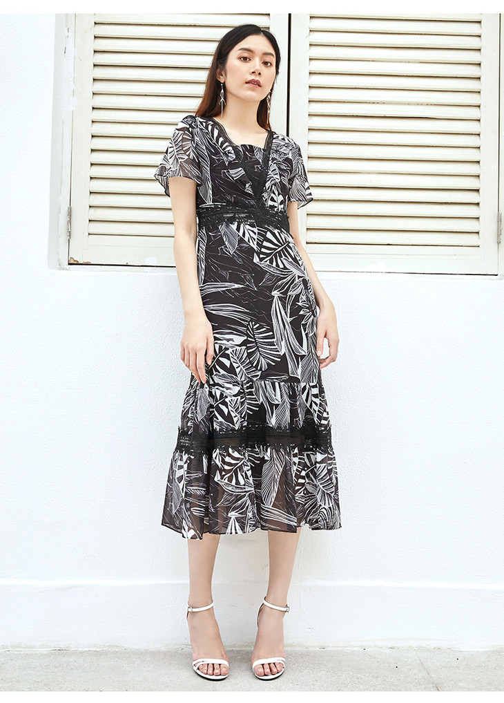 EITIE爱特爱夏季新款优雅气质网纱拼接包臀显瘦鱼尾连衣裙B2107754