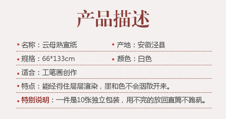 徽宣定制工笔画专用四尺云母熟宣纸10张装