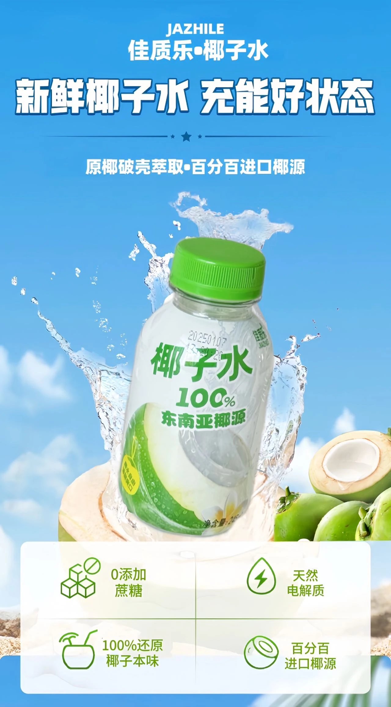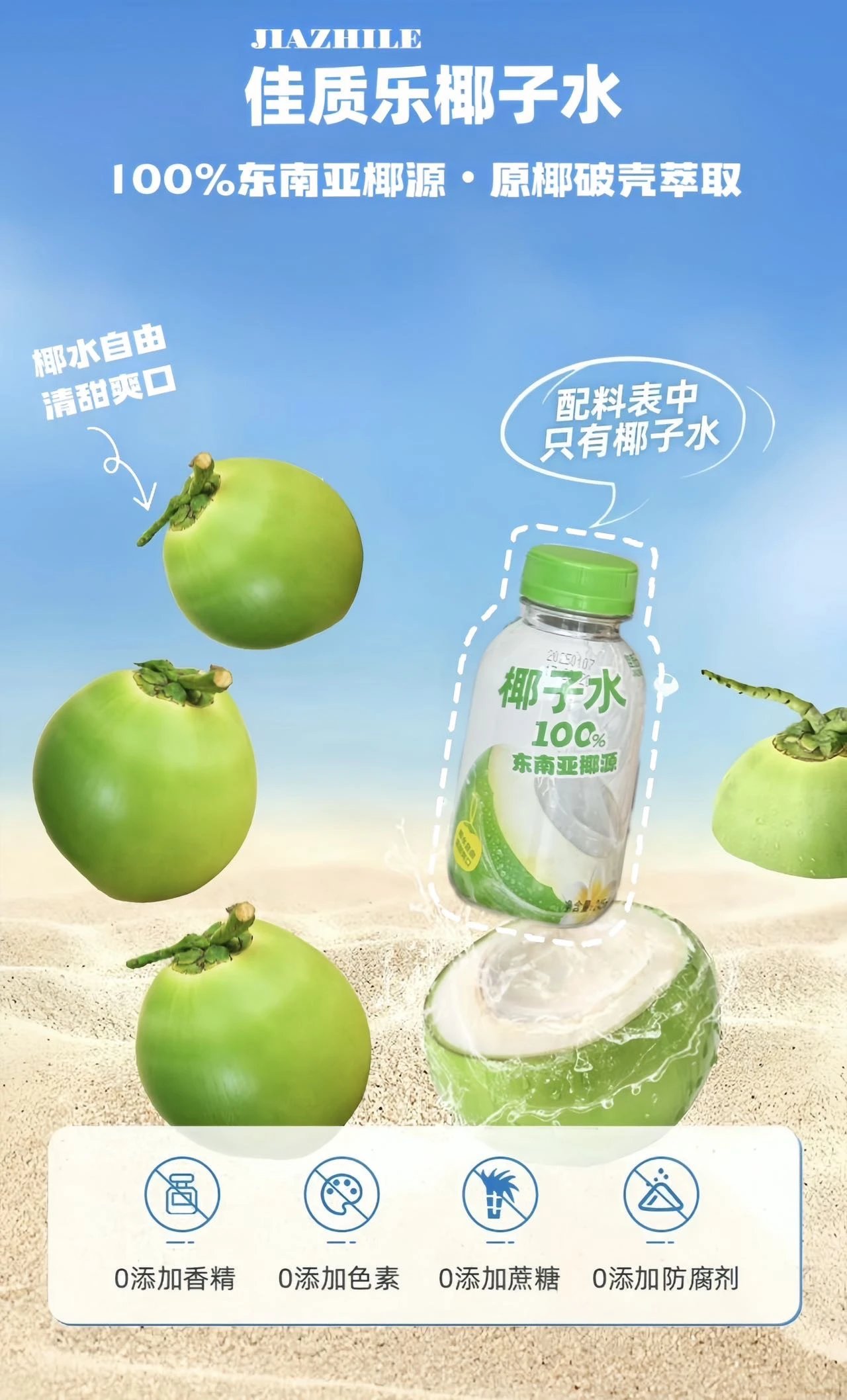 要说夏日必备的健康饮品,还得是100%纯椰子水! 但…市场上买的青椰打开太麻烦!费时还费力! 而且总免不了踩坑,有的太甜、有的太淡、有的有怪味…… 直接买的椰子水❌不仅难喝,而且乱七八糟的添加剂一大堆…一点也不纯~真太难了… 『佳质乐•椰子水』椰青现开的味道,清爽又甘甜 不需要远赴海岛就可以尝到清甜的椰子水啦~