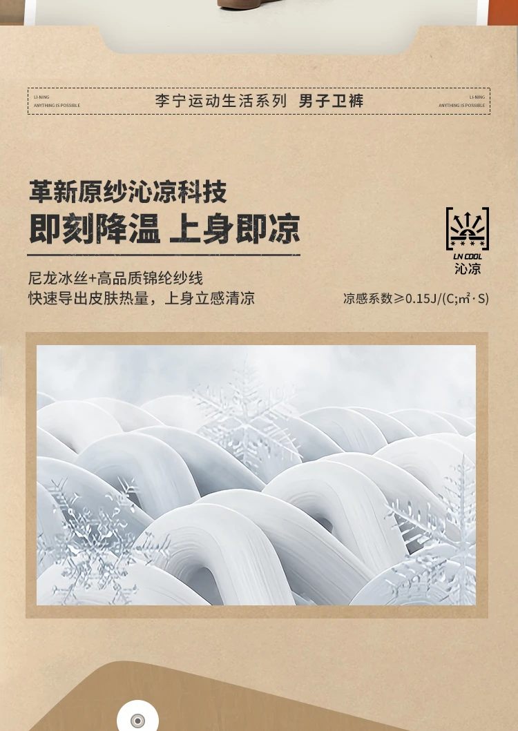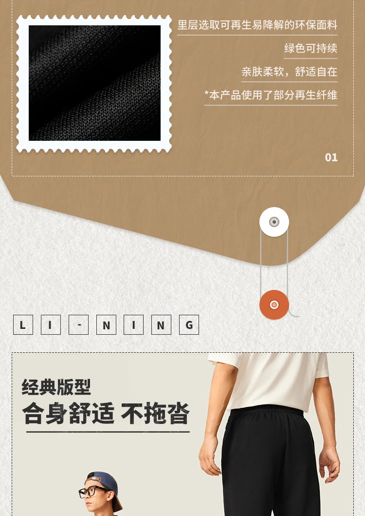 【抄底!299任选2件】李宁男子冰感舒适吸湿排汗卫裤AKLV767