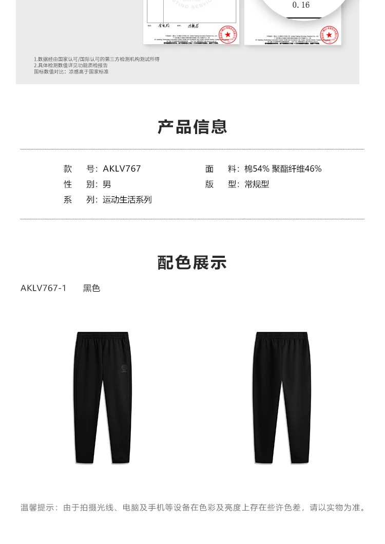 李宁25秋季新品健身系列男子束脚卫裤AKLU127