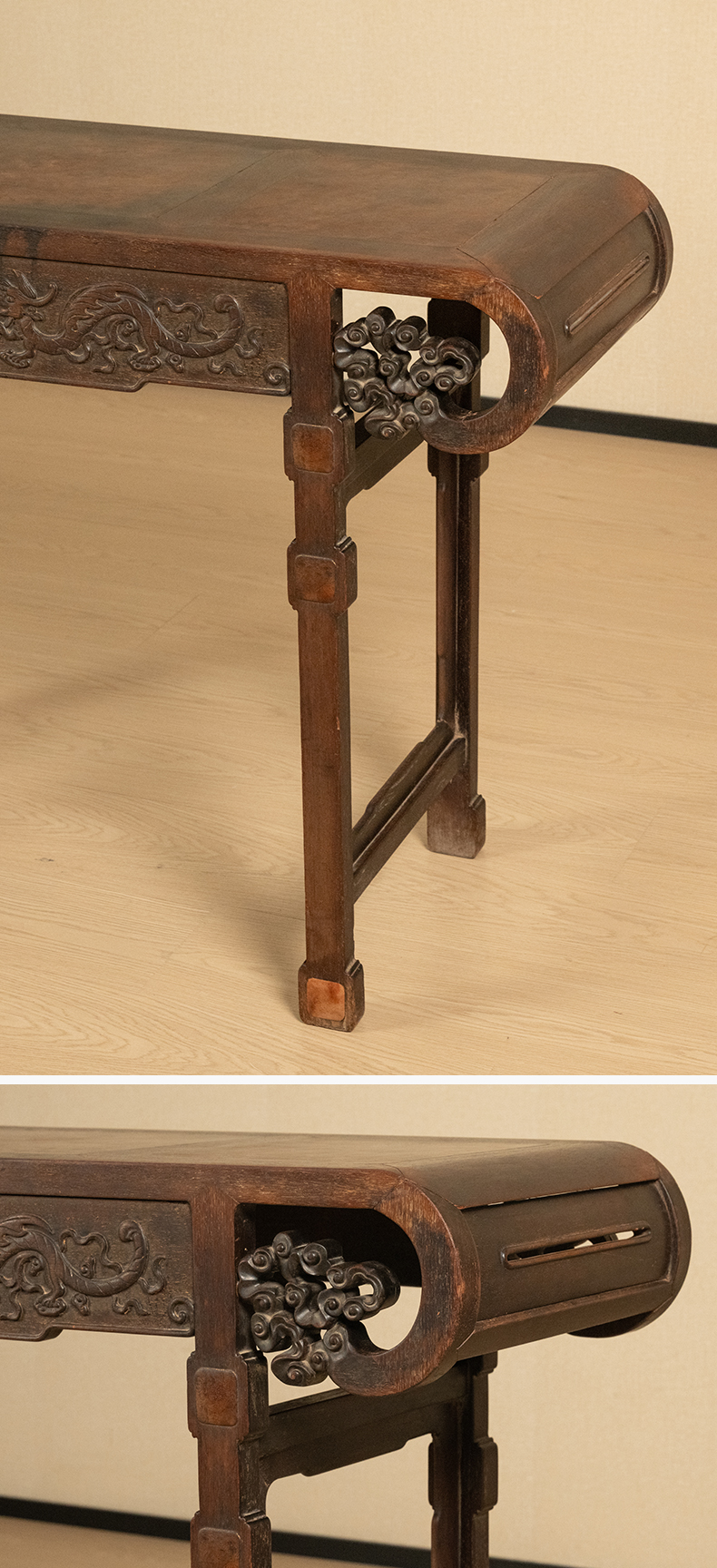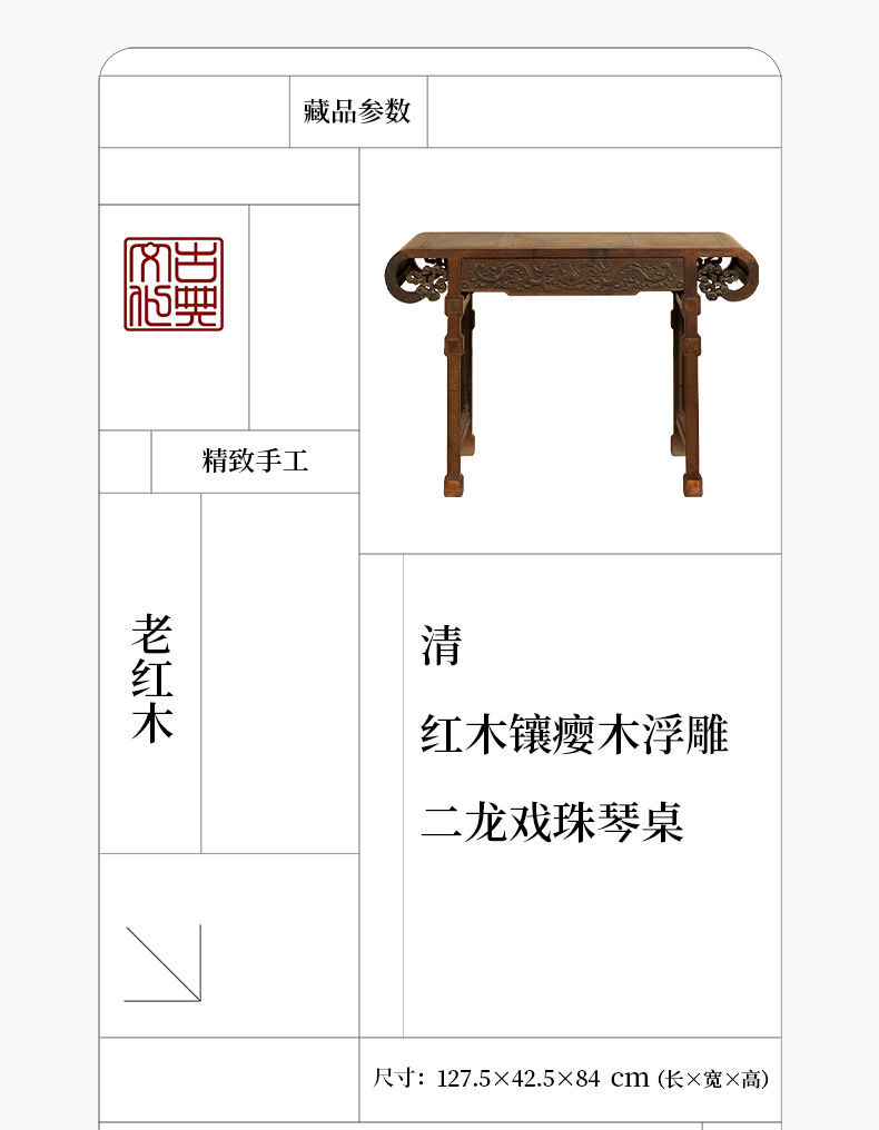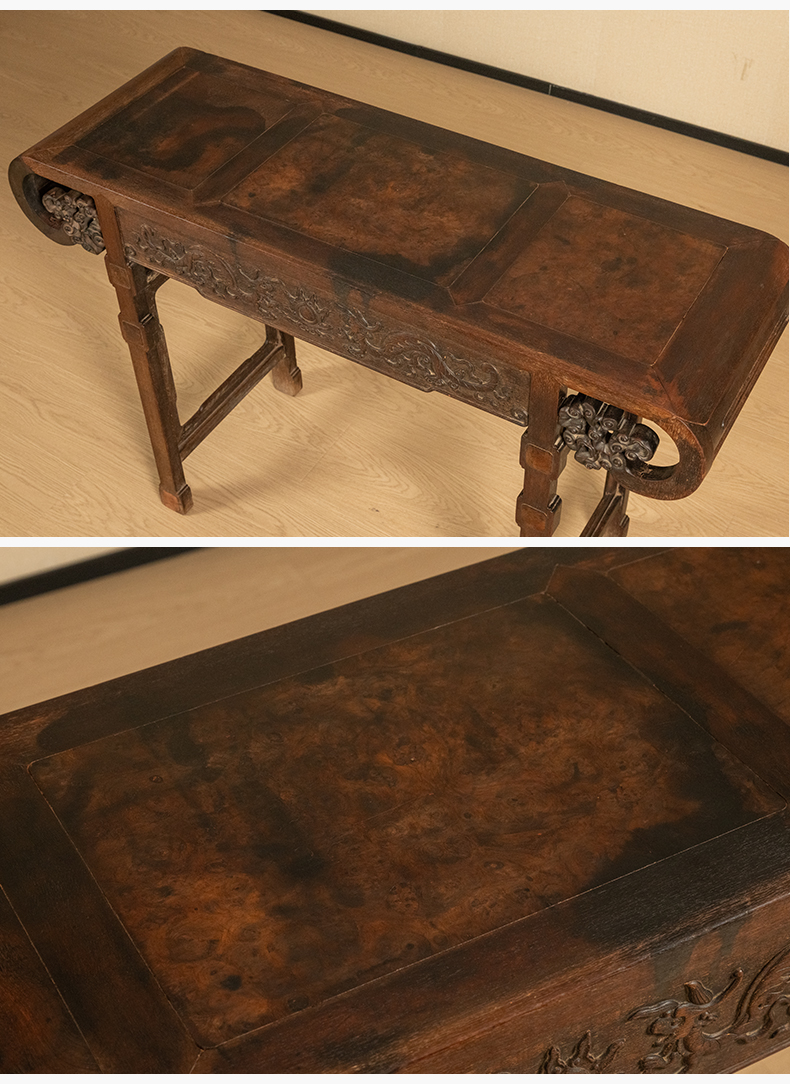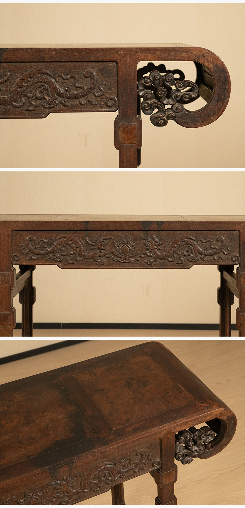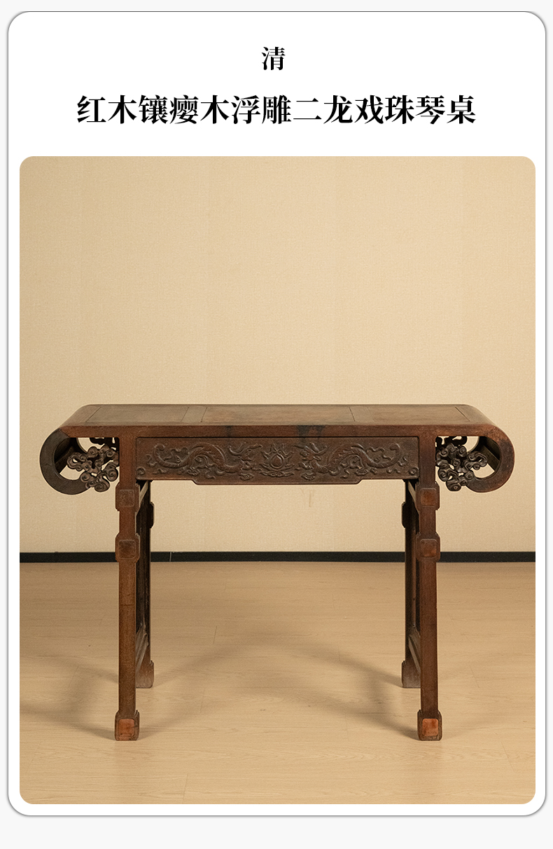 清 红木镶瘿木浮雕二龙戏珠琴桌