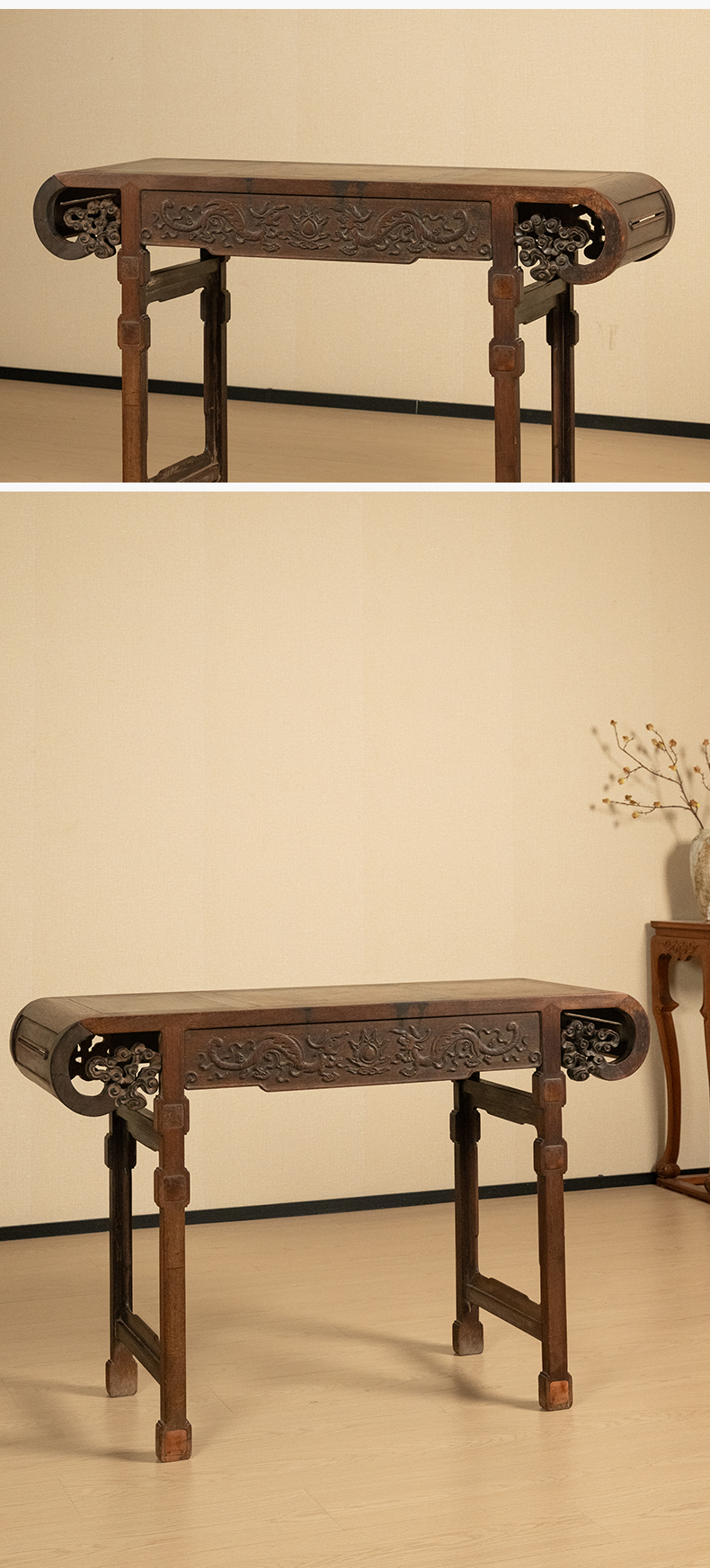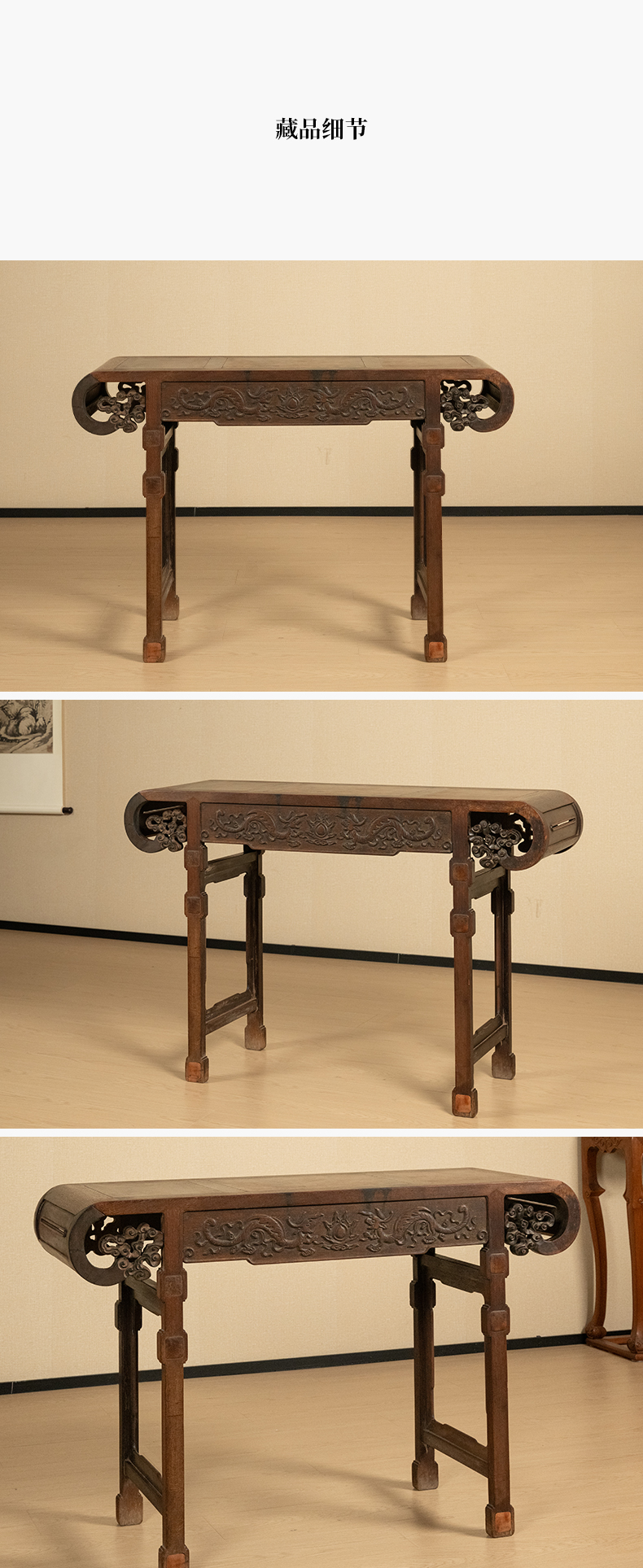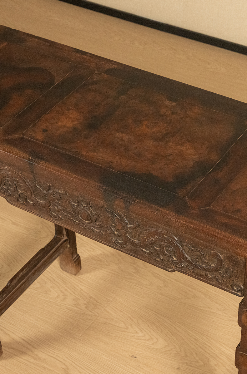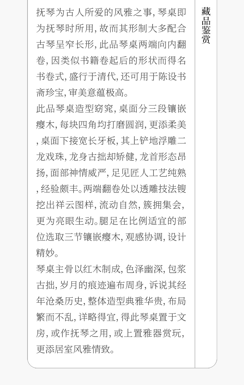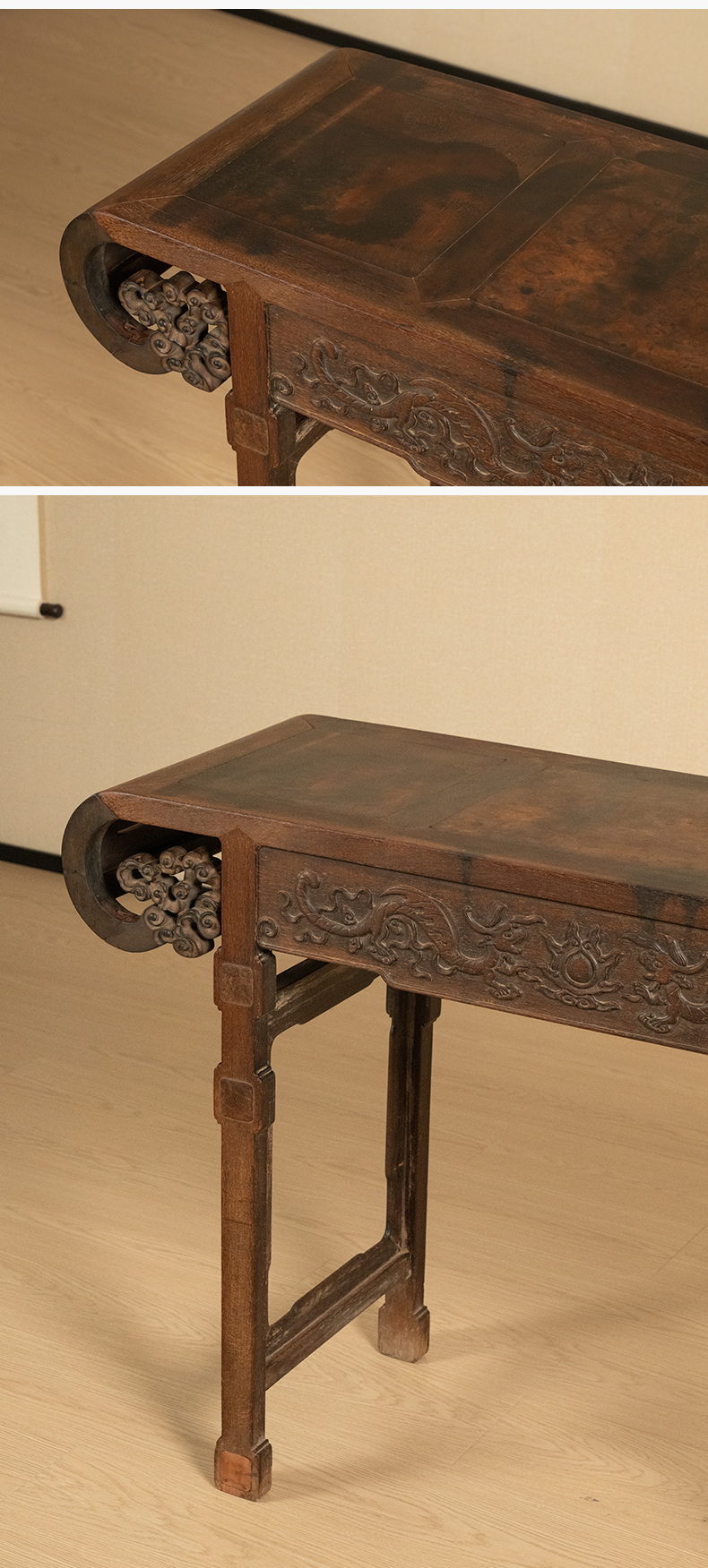 清 红木镶瘿木浮雕二龙戏珠琴桌
