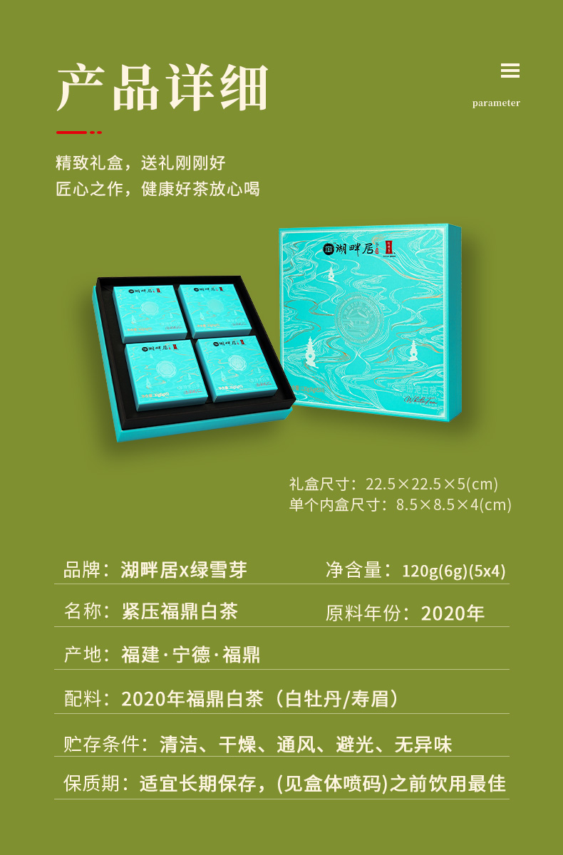 湖畔居x绿雪芽 2020年福鼎白茶白牡丹寿眉便携装茶片
