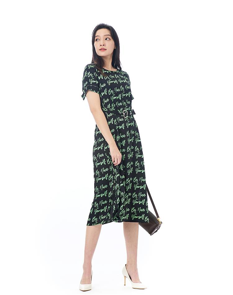奇威 个性艺术印花短袖连衣裙0DB03164