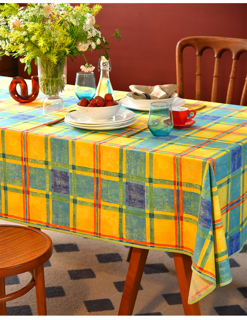 黄蓝经典格纹系列长方形桌布节日氛围棉布桌布