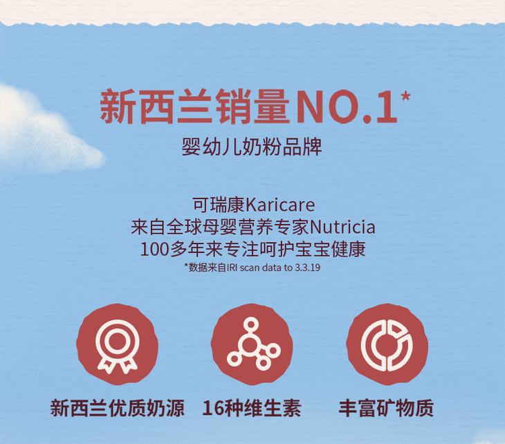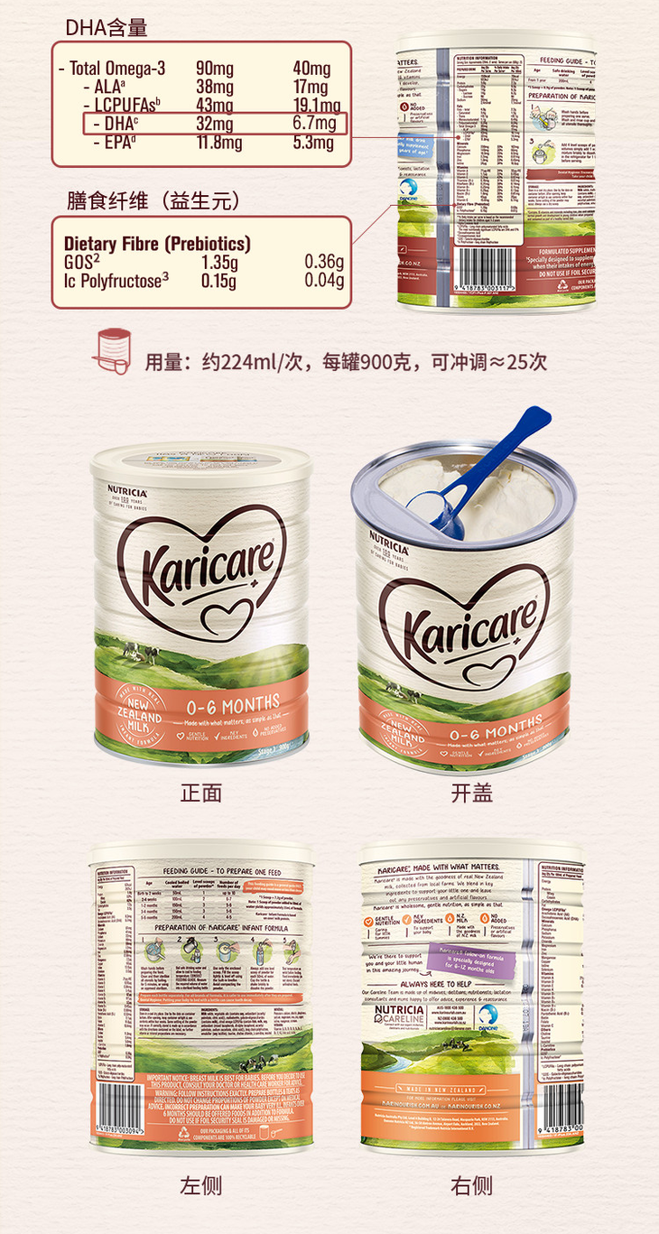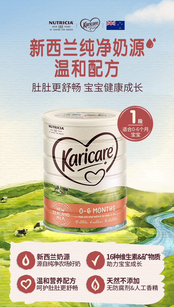 新西兰原装进口 可瑞康(Karicare) 婴儿配方牛奶粉1段 900g