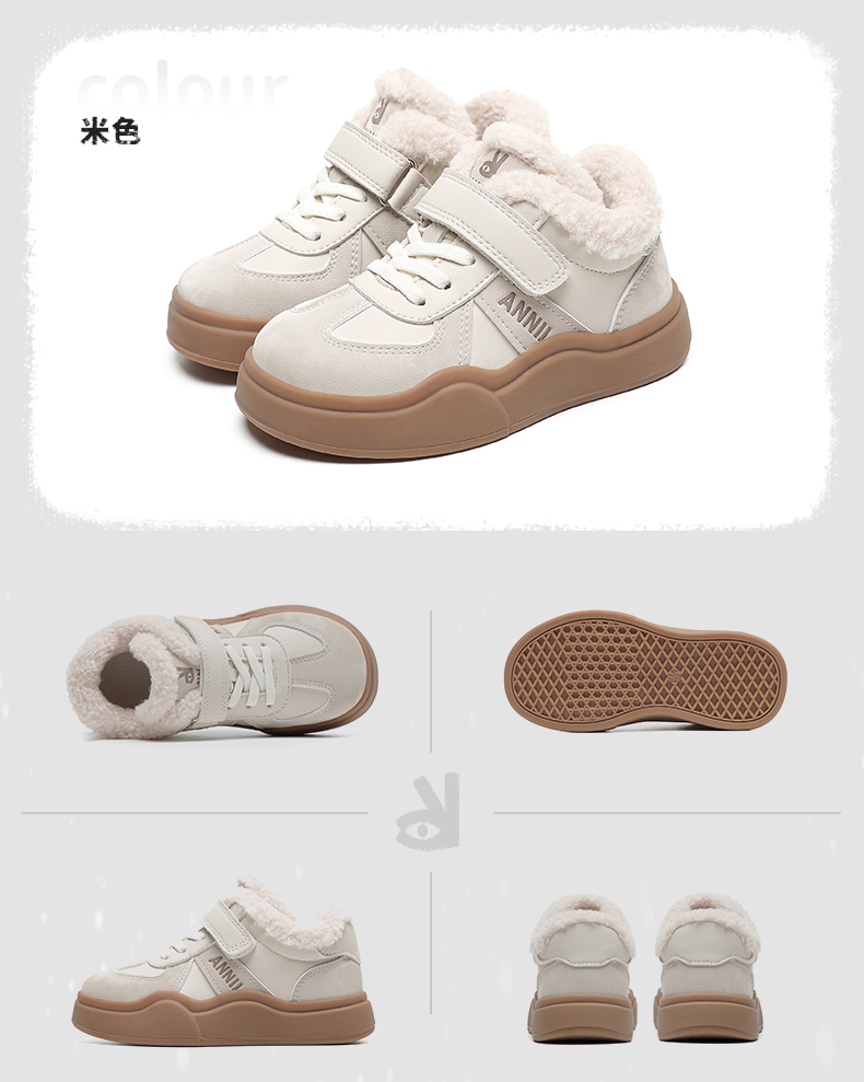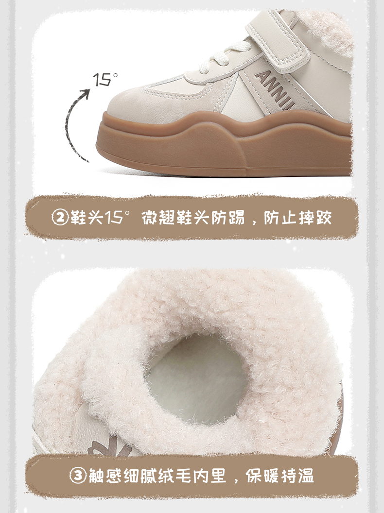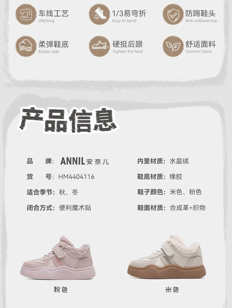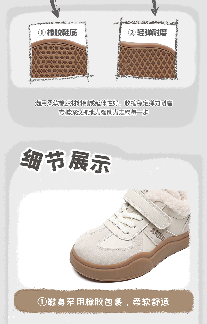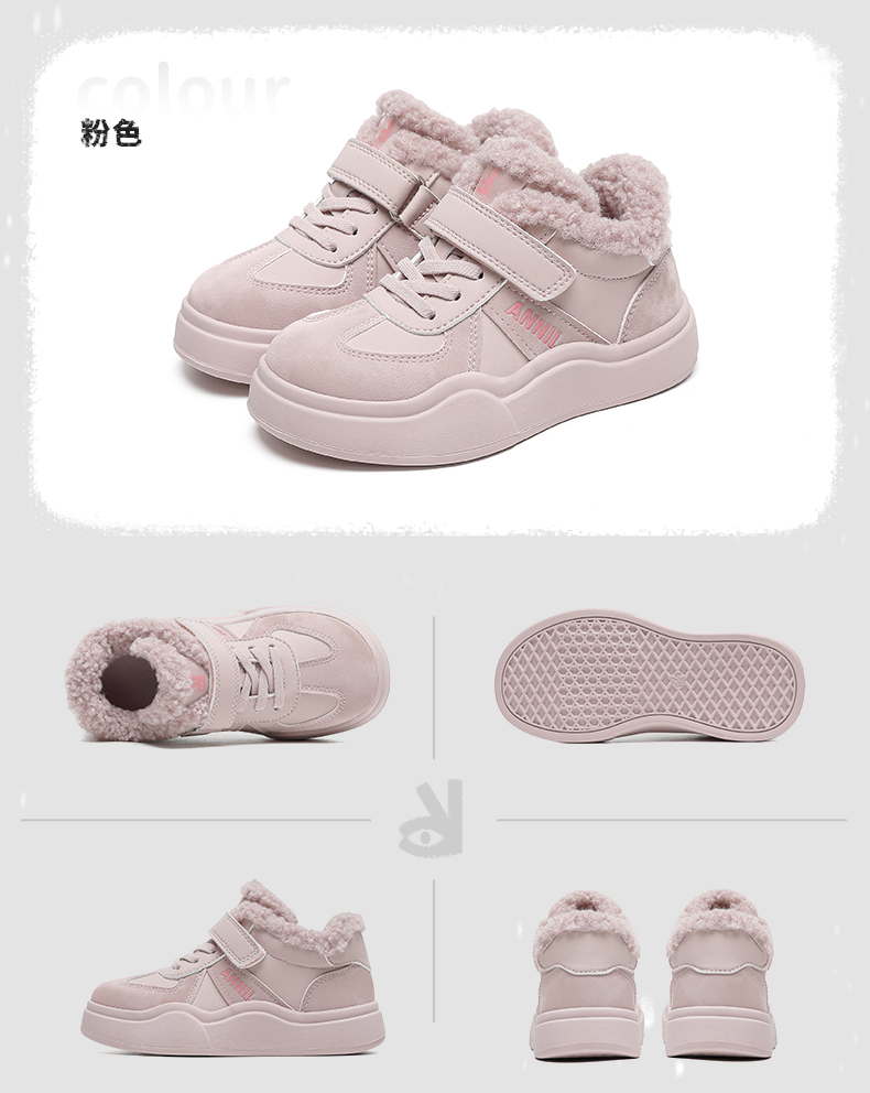 ANNIL/安奈儿加绒板鞋低帮冬鞋水晶绒加厚款雪地靴女大童冬季新款HM4404116