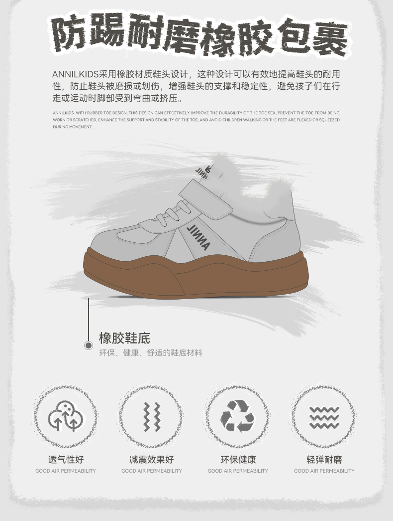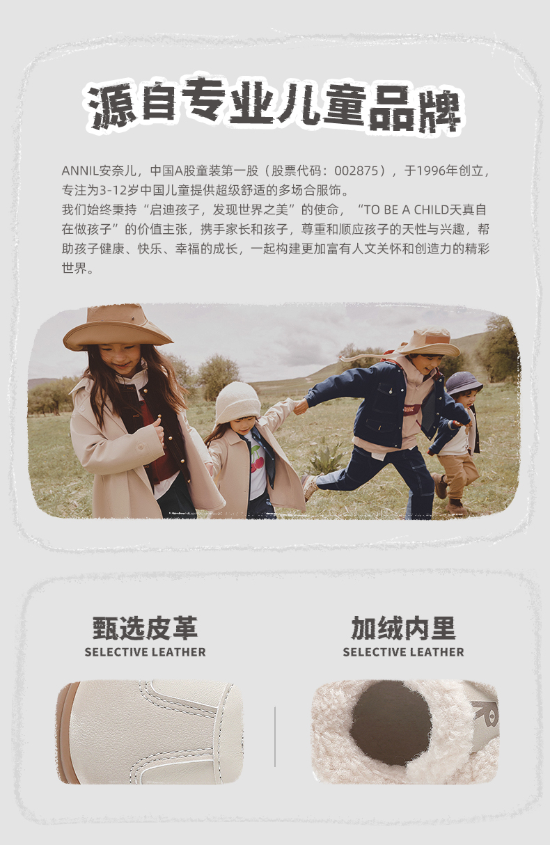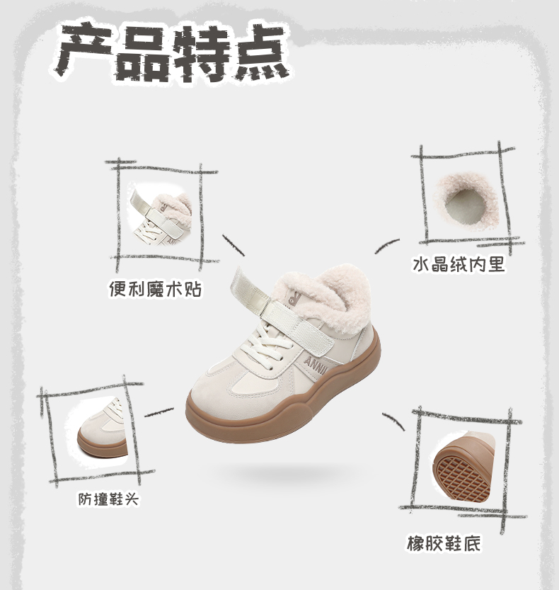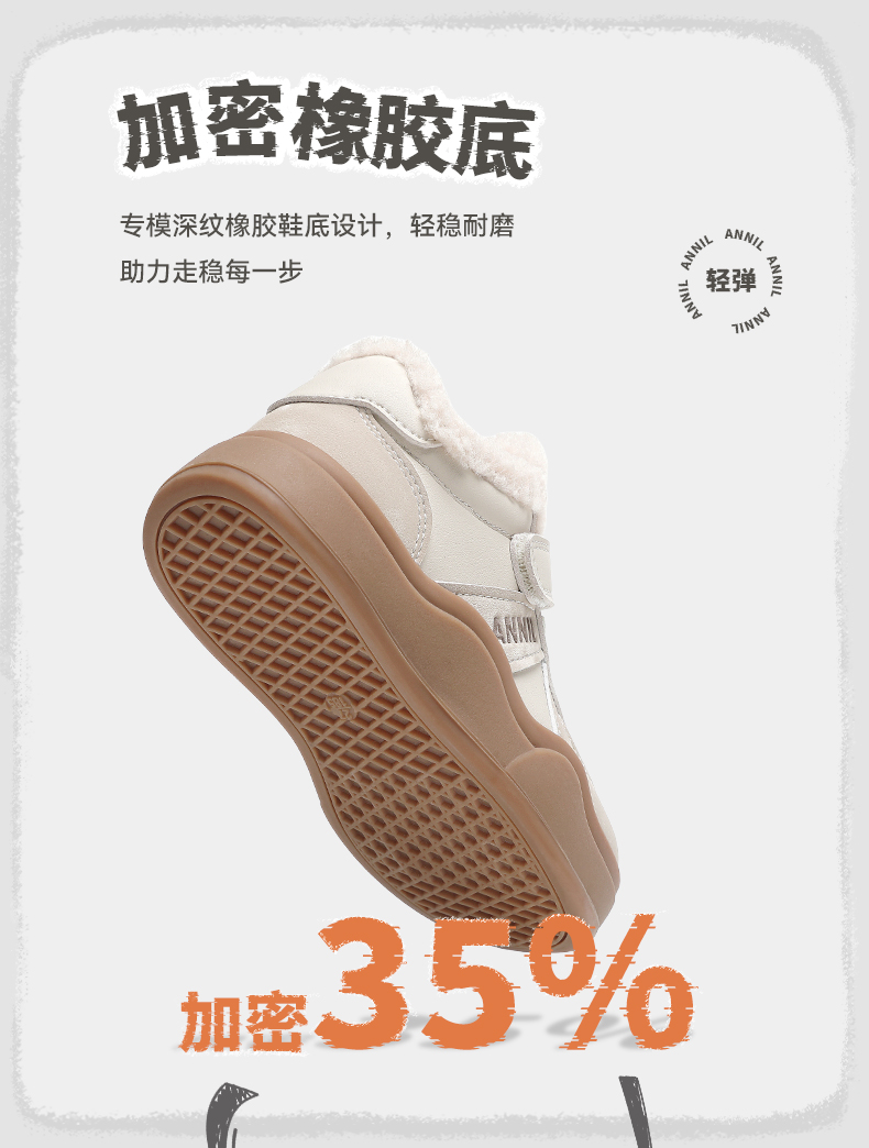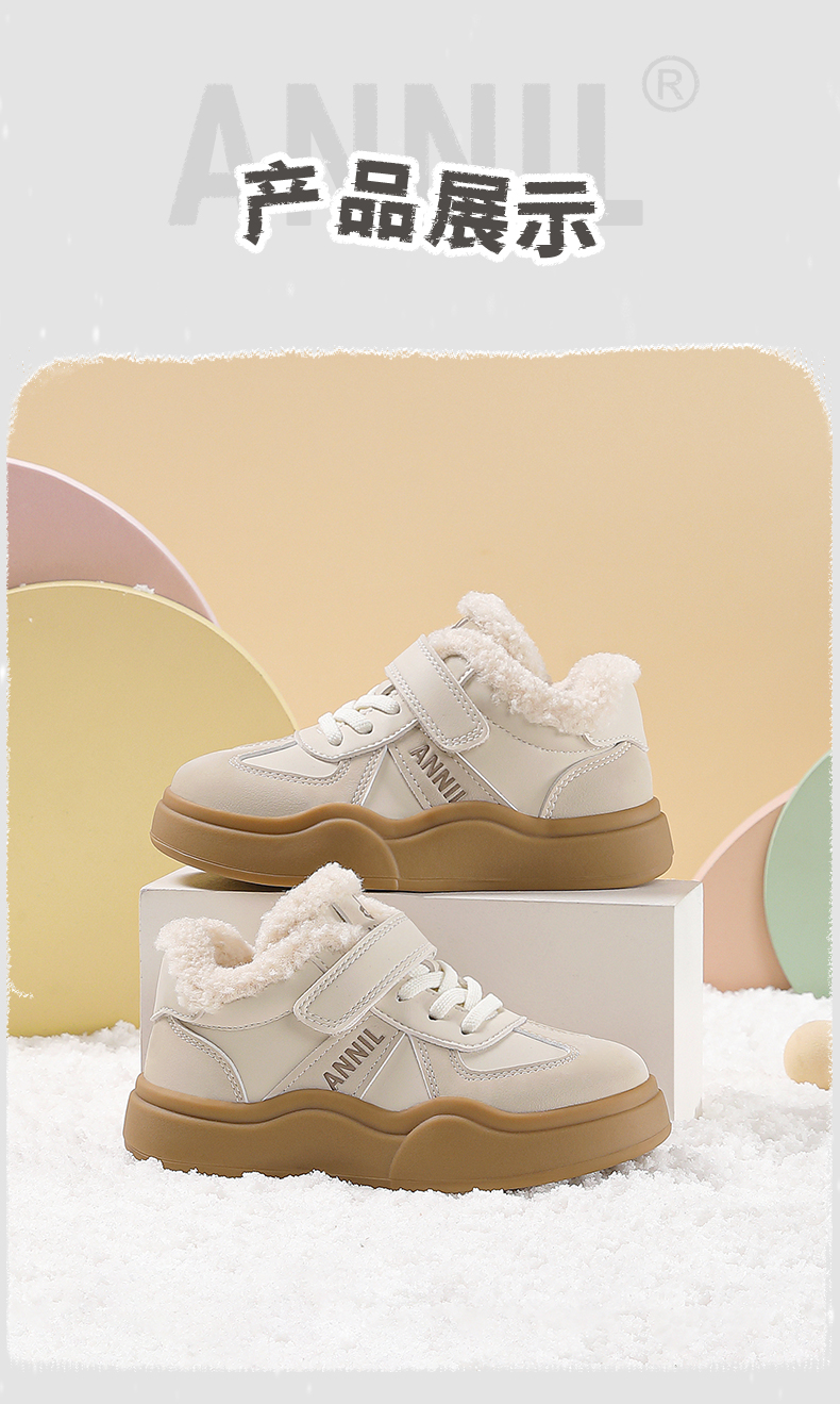 ANNIL/安奈儿加绒板鞋低帮冬鞋水晶绒加厚款雪地靴女大童冬季新款HM4404116