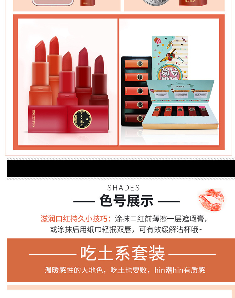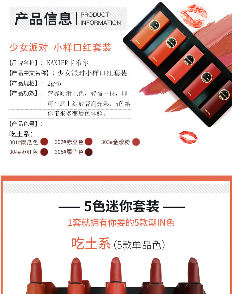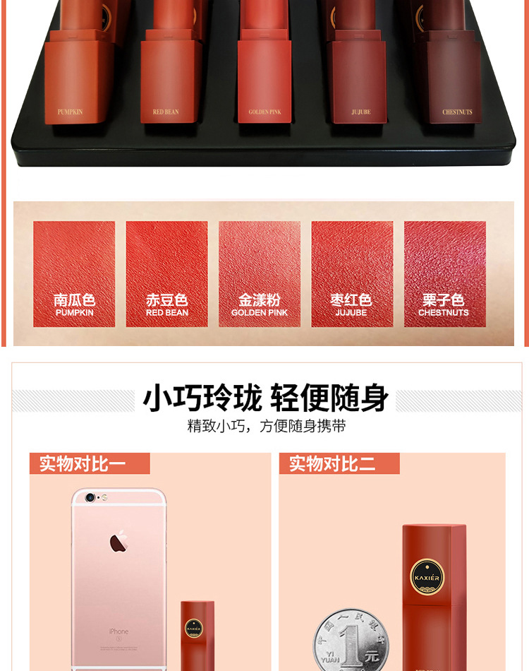 卡希尔网红热推五支装口红套装持久哑光南瓜多色口红唇膏 TZW