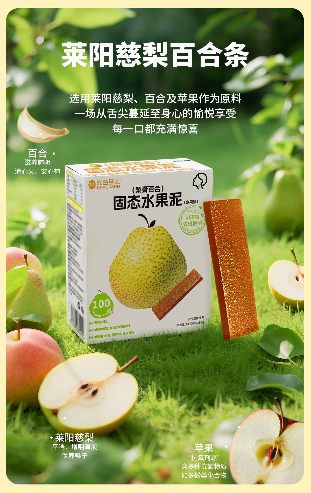 2岁+古法梨膏原果打浆 0防腐果泥条 80g/盒配料很干净【26年4月】光合至上