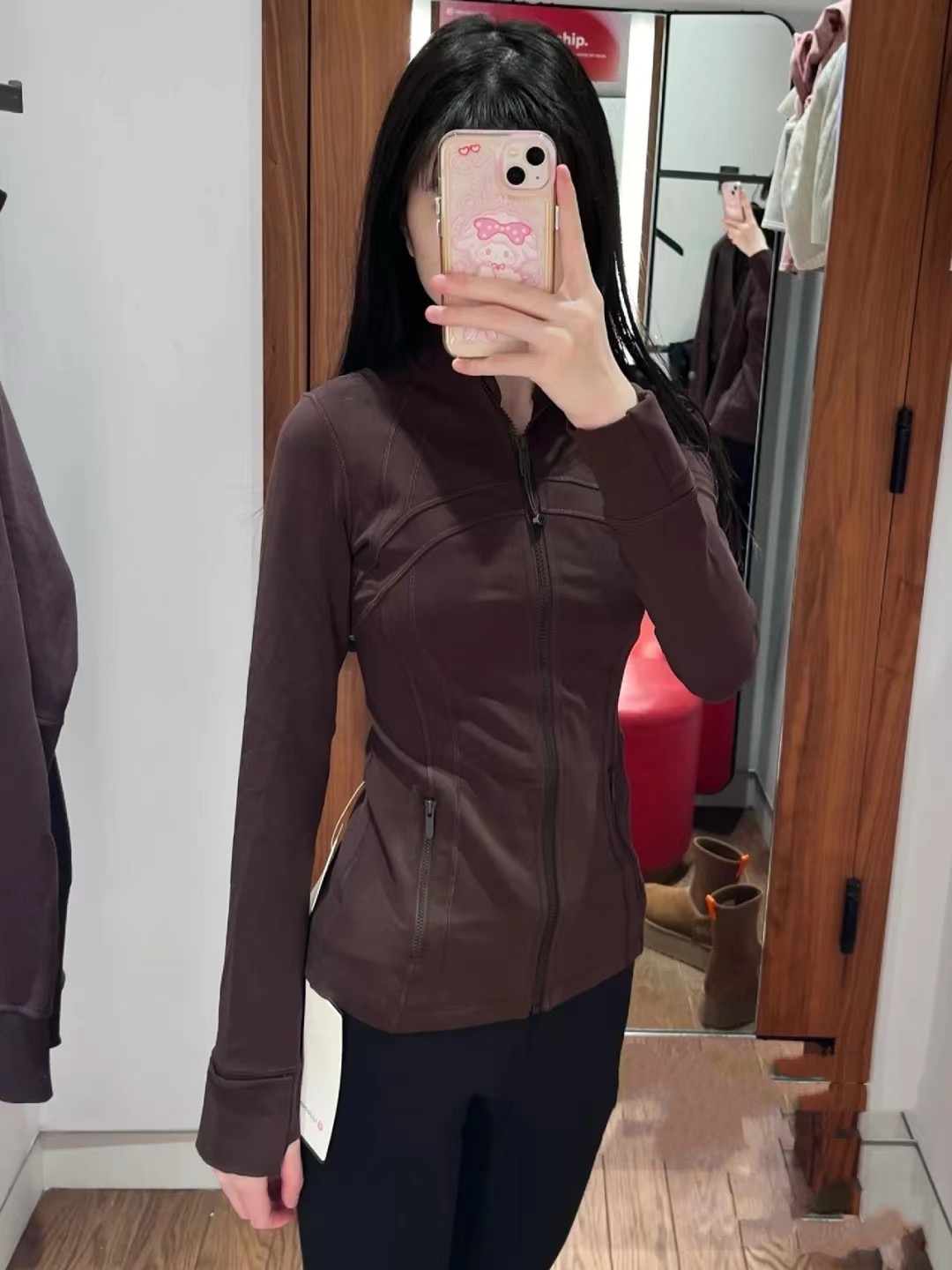 不愧是lulu 穿上整个人都显得大腰细 尤其是黑色超级显瘦!推荐nulu面料的define 真的穿上舒服又显瘦!!