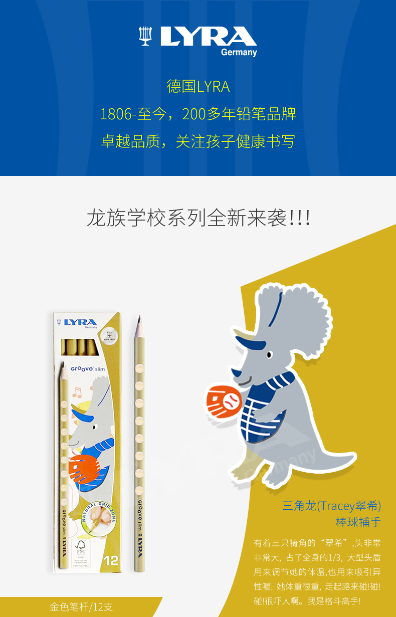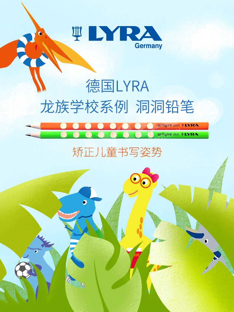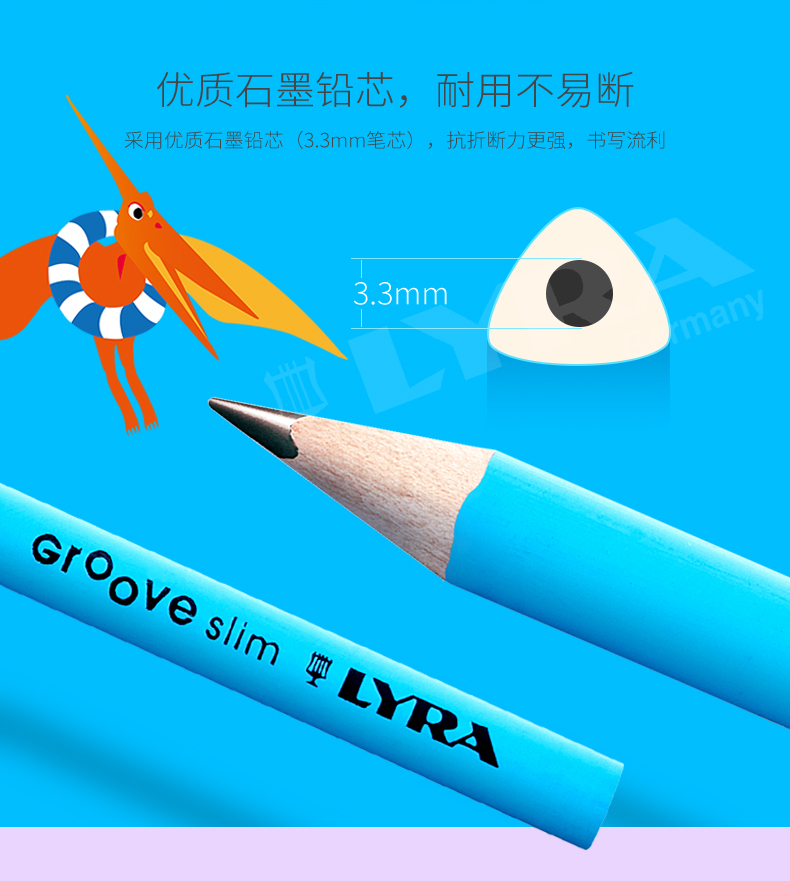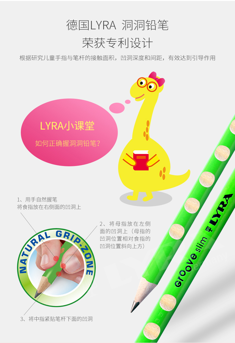 德国LYRA艺雅洞洞铅笔HB三角形粗杆2b儿童幼儿园小学生矫正握姿2h