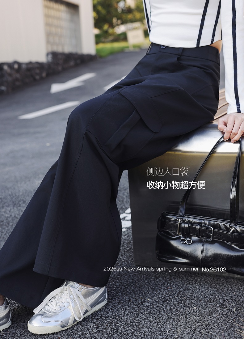 【腿型修容师,柔软丝滑】春夏季新款SAKURA樱花工装弯刀裤女新款高腰显瘦直筒裤藏肉百搭多口袋阔腿裤