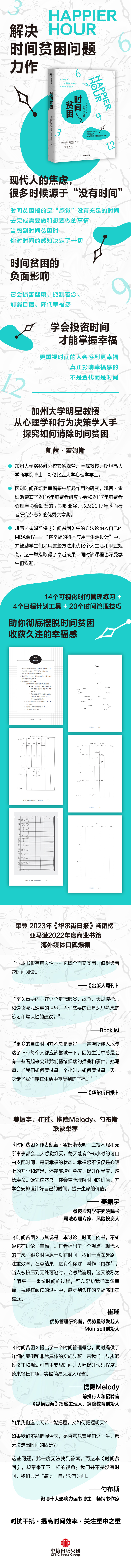 “《时间贫困》 与其说这是一本讨论“时间”的书,不如说,它在讨论“幸福”。重塑时间的过程,可以帮助我们重塑幸福。”——崔璀(优势管理研究者,优势星球发起人,Momself创始人)
