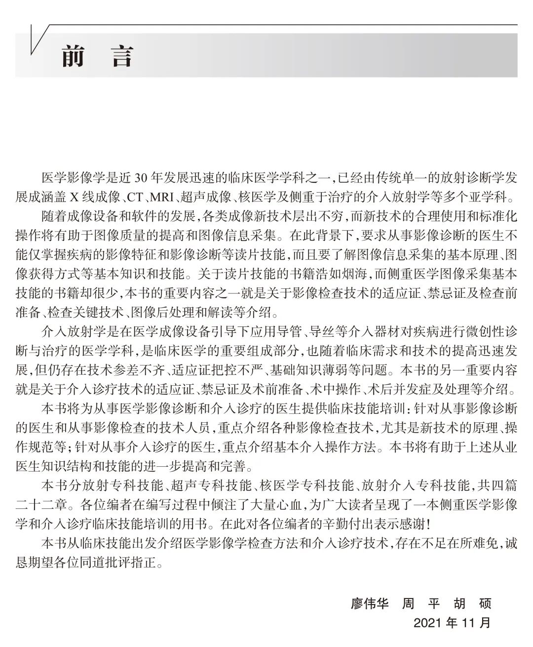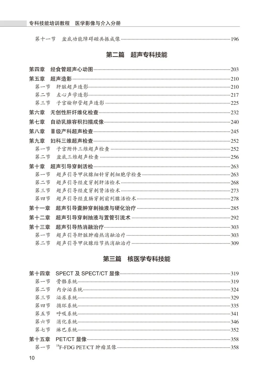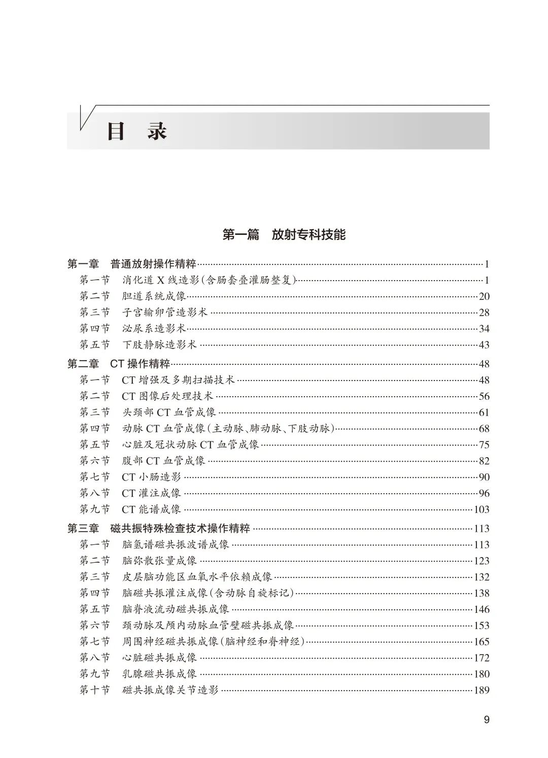全书共4篇22章,包括放射专科技能、超声专科技能、核医学专科技能、放射介入专科技能。