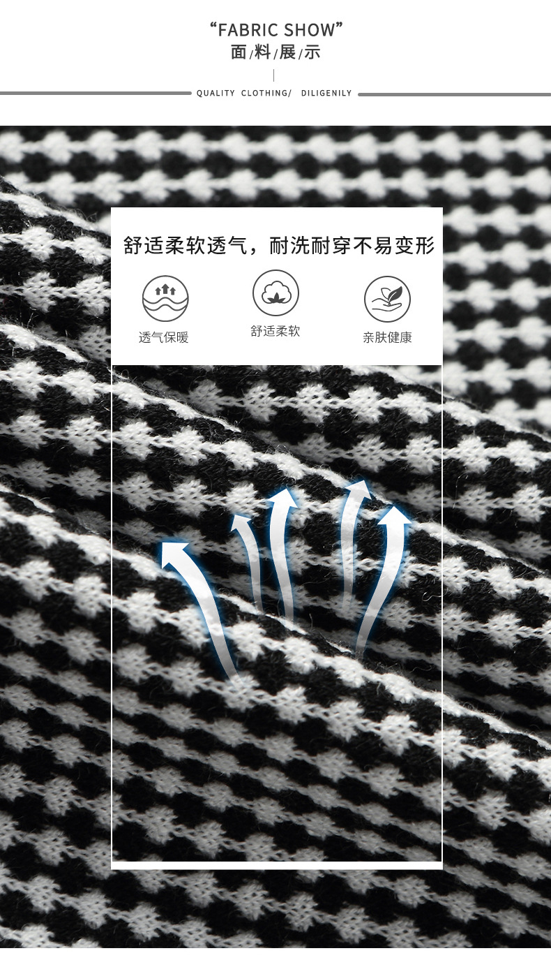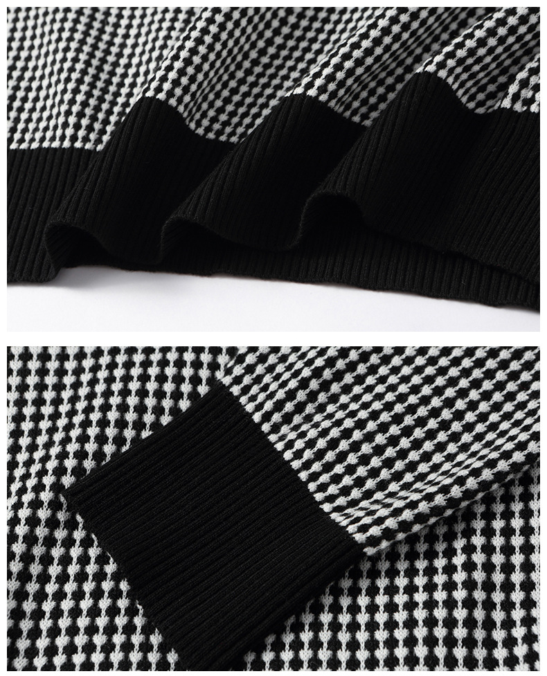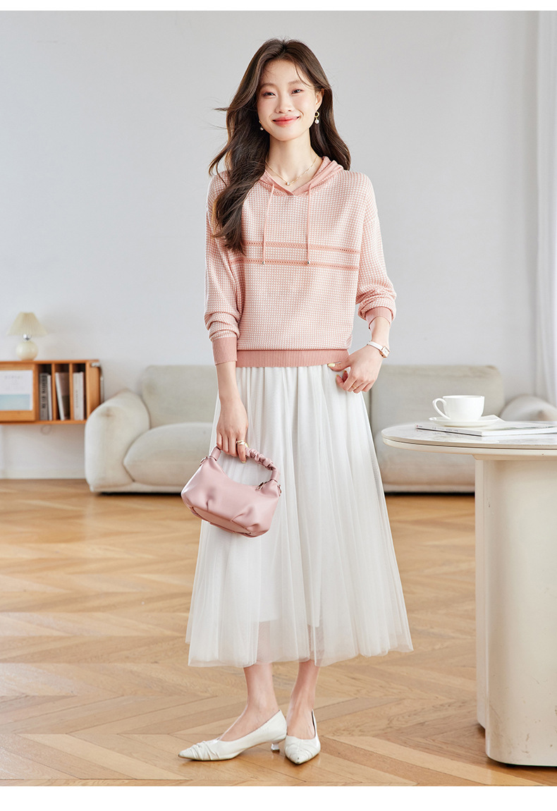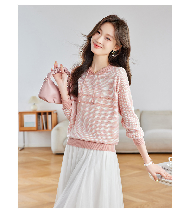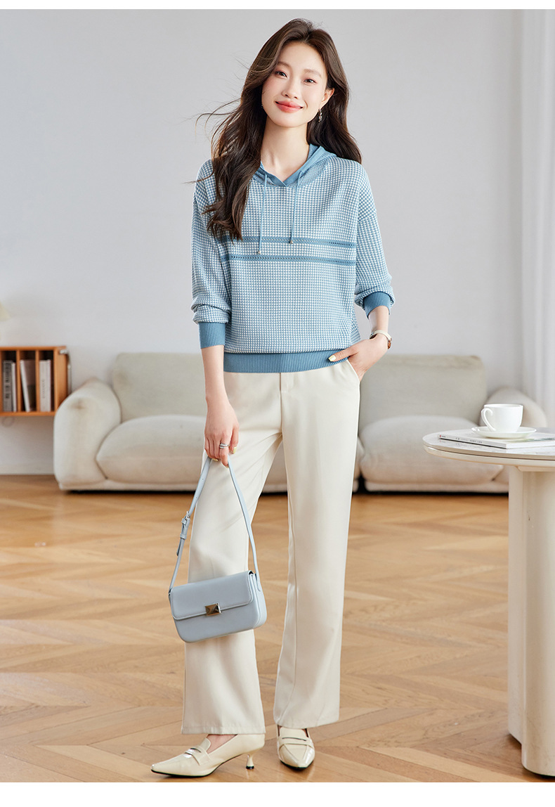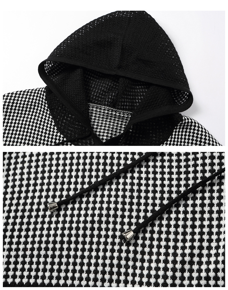 CC2025春秋新款连帽针织衫女千鸟格休闲卫衣韩版长袖宽松套头帽衫女