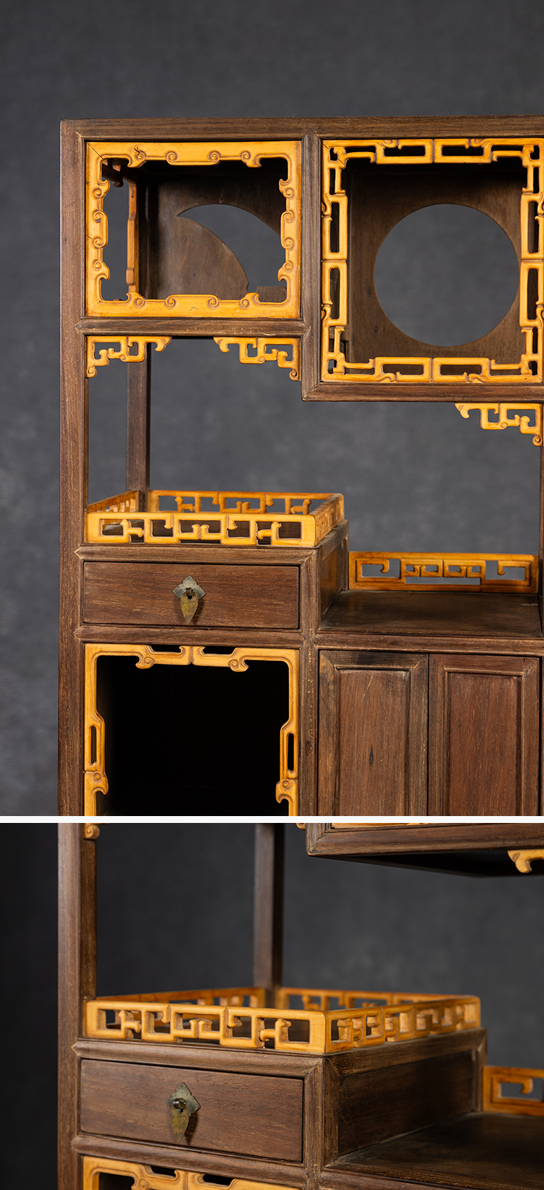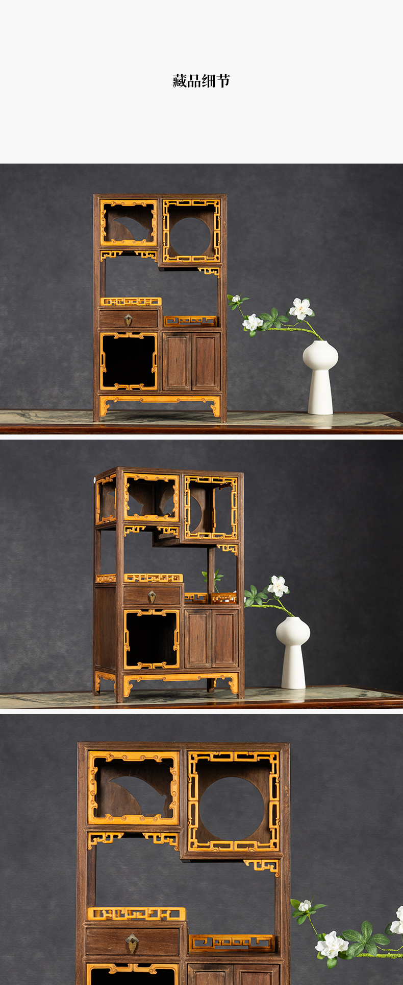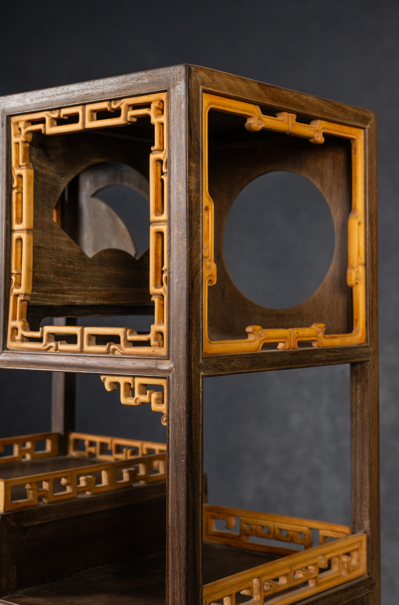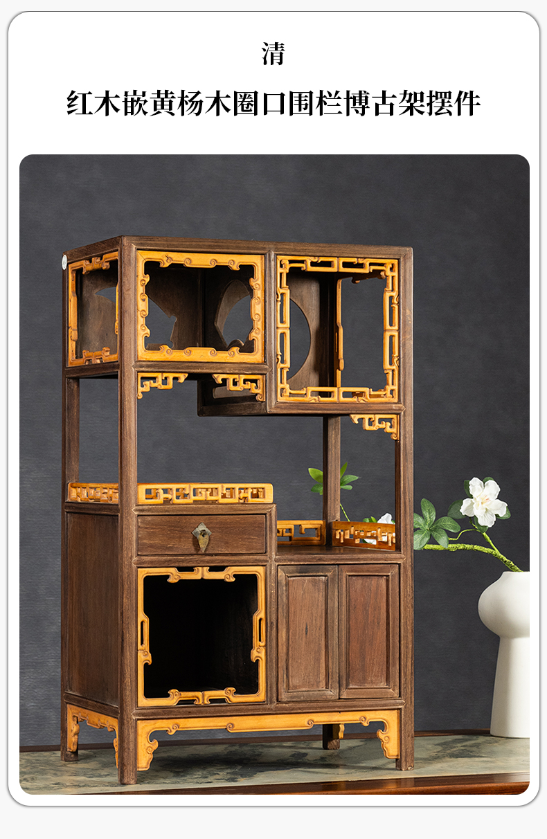 清 红木嵌黄杨木圈口围栏博古架摆件