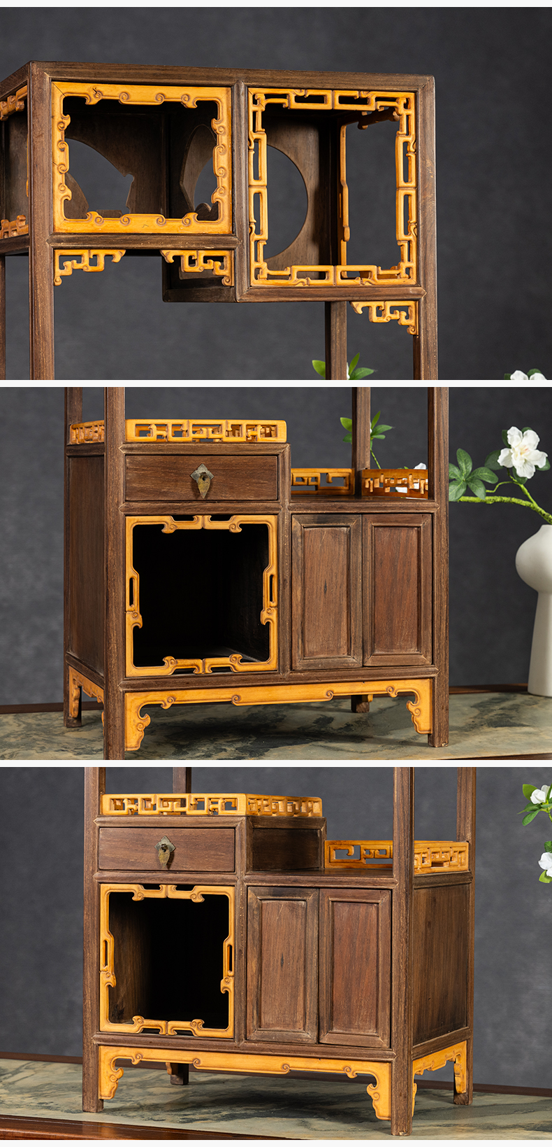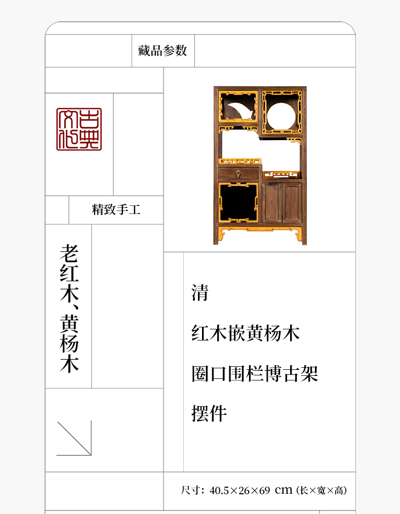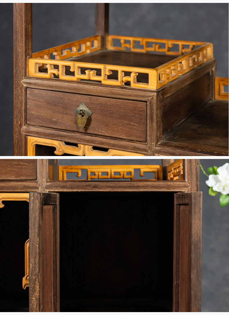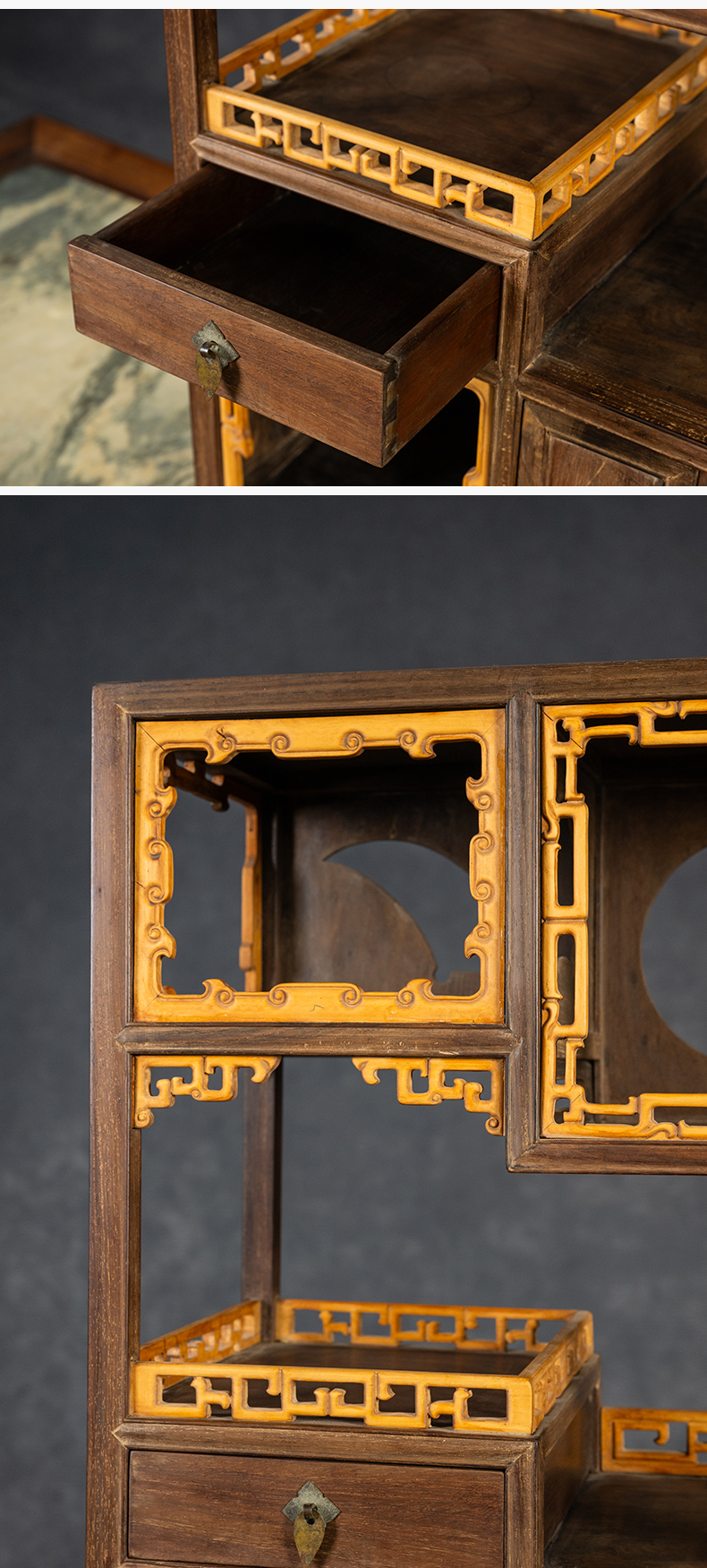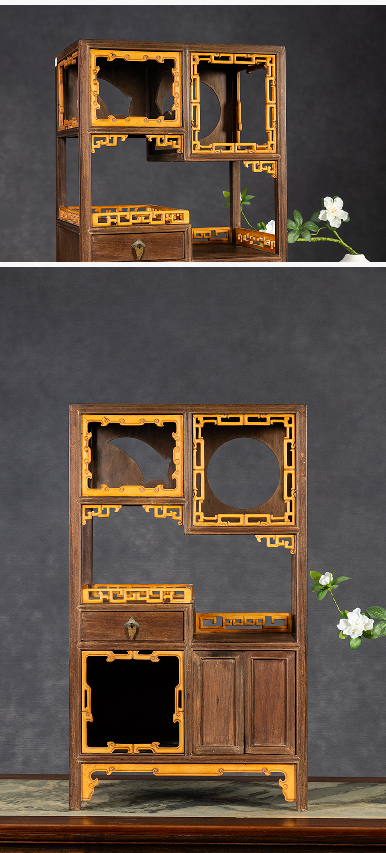清 红木嵌黄杨木圈口围栏博古架摆件