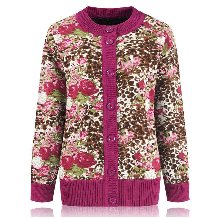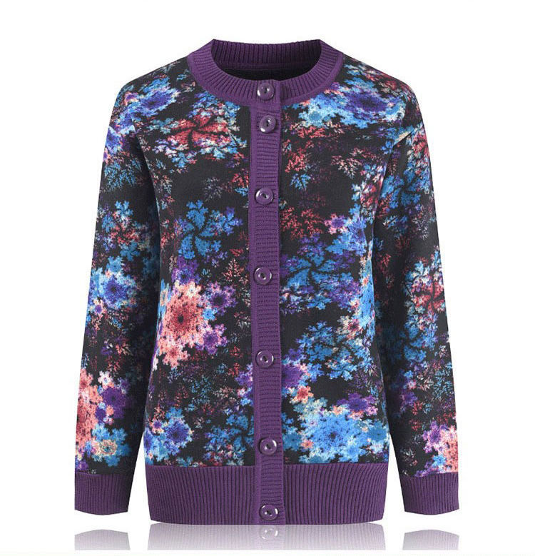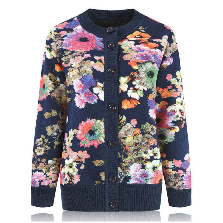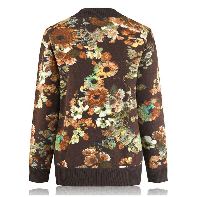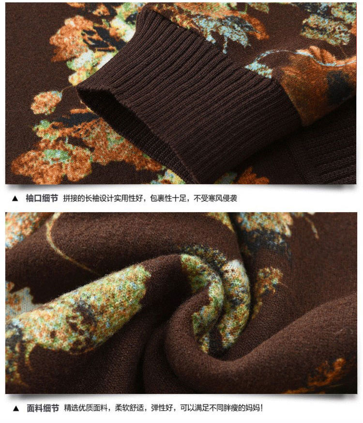 PDD-AYMN201229新款优雅气质圆领长袖加绒保暖印花开衫外套