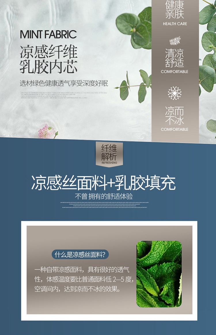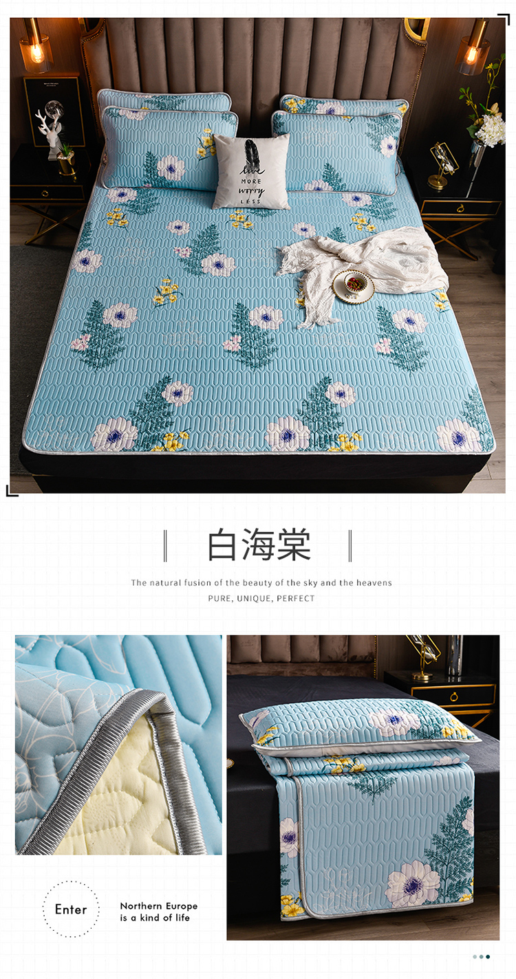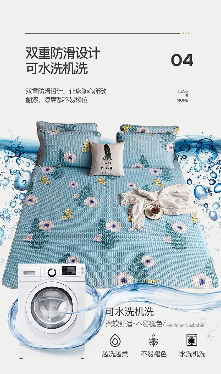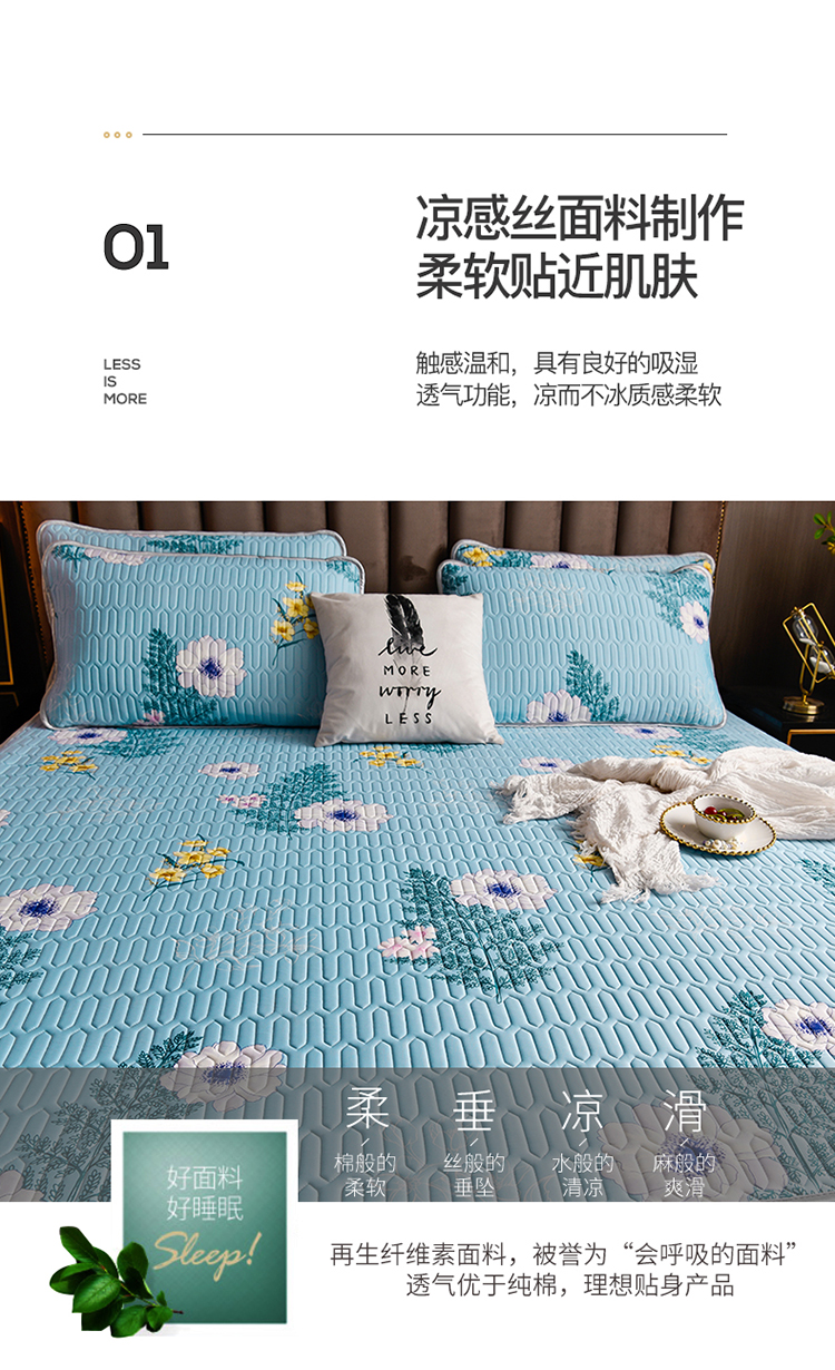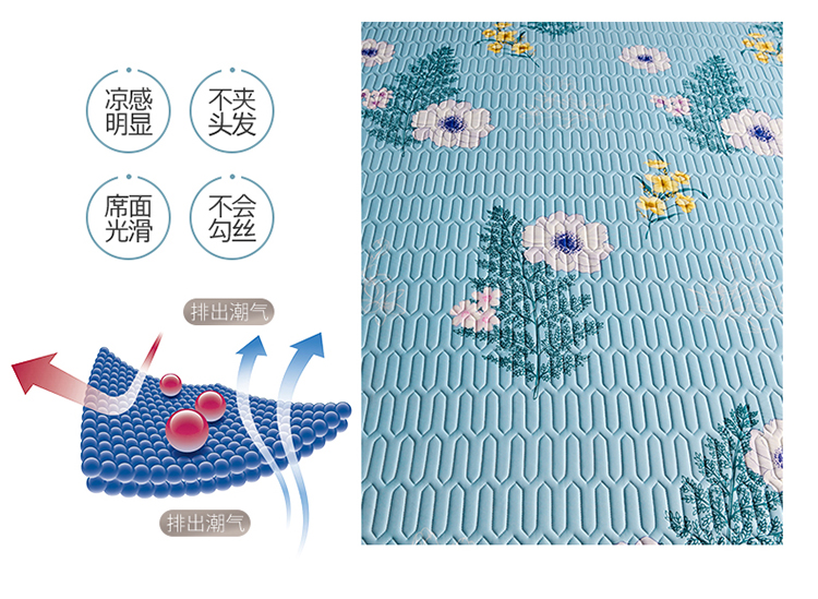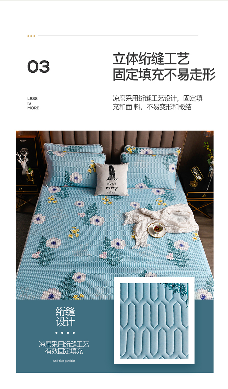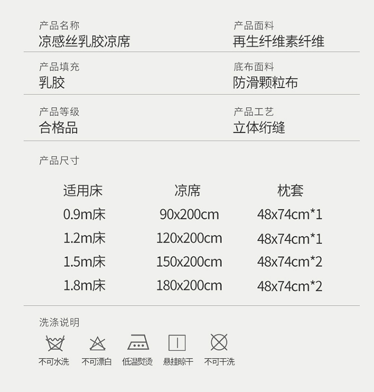 凉感丝乳胶凉席三件套(凉席150*200cm/180*200cm/枕套48*74cm*2)