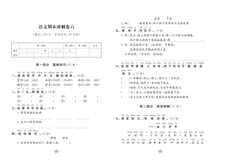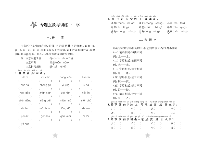 本系列试卷精心为学生复习备考设计,涵盖“专题点拨与训练”“期中测试卷”和“期末测试卷”三大板块,旨在全面提升学生的语文能力和应试技巧。“专题点拨与训练”针对语文学习的各个板块,如拼字、词、句子、阅读、作文等进行细化,每一项都精心设计题目,深度剖析知识点,帮助学生查缺补漏,逐个击破学习难点,夯实语文基础;“期中测试卷”紧贴学期教学进度,帮助学生检验学习成果,查漏补缺,为后半学期的学习指明方向;“期末测试卷”对整个学期的知识进行系统整合,全面覆盖学期知识点,题目设计科学严谨,难度梯度合理,旨在帮助学生巩固所学,冲刺期末高分。本系列试卷题型多样,解析详尽,帮助学生实现从知识巩固到应试能力的全面提升,是冲刺语文高分的利器。