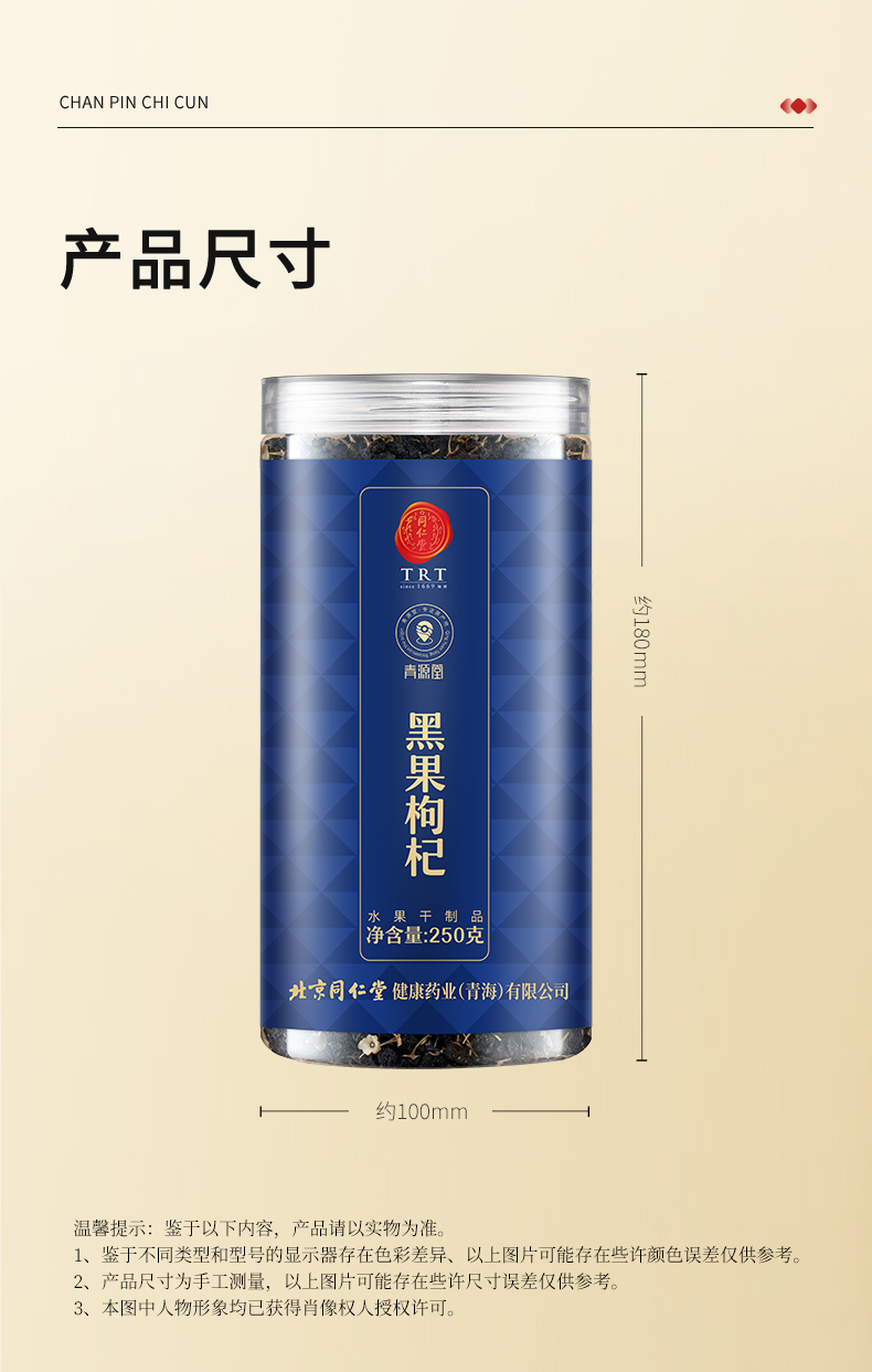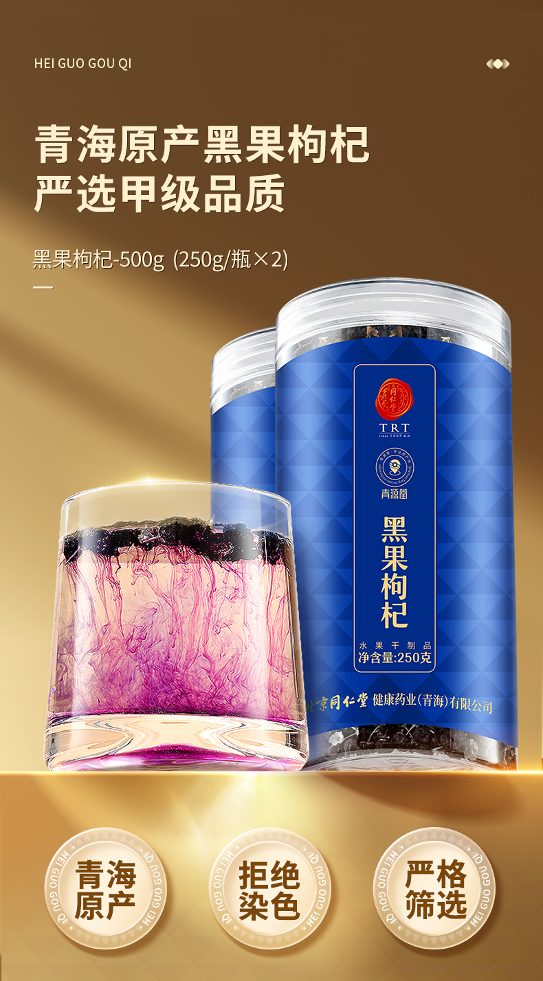 【正宗同仁堂品牌】北京同仁堂 青源堂 黑枸杞甲级500克 青海大果 饱满肉厚 拒绝熏硫(250g *2罐)SY