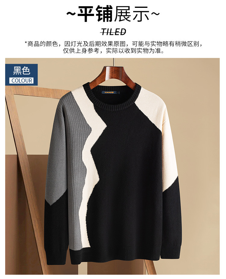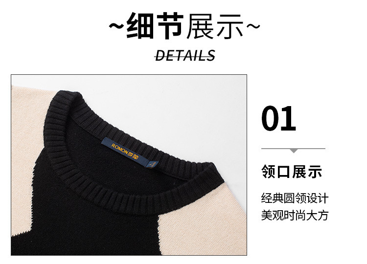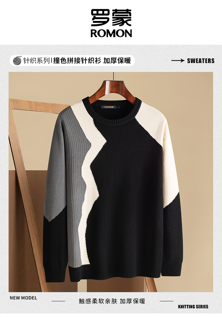 27DKLQ2310【撞色拼接】罗蒙时尚针织衫男休闲男士针织衫舒适打底衫男毛衫男毛衣