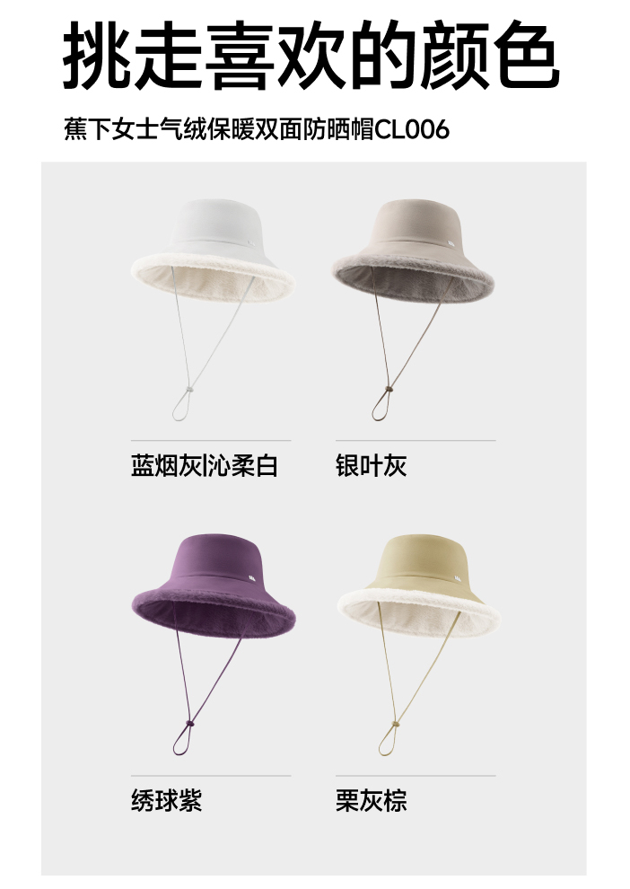 【25秋冬新品】蕉下女士气绒保暖双面防晒帽CL006