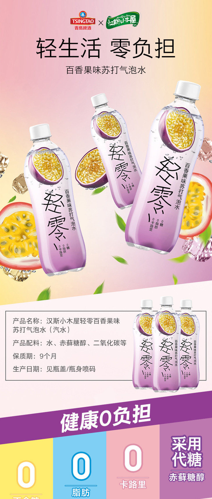 轻零苏打水-百香果味480ml*15瓶/箱 商品图3