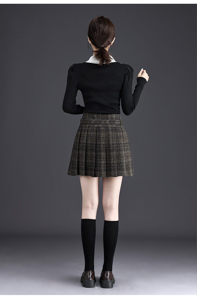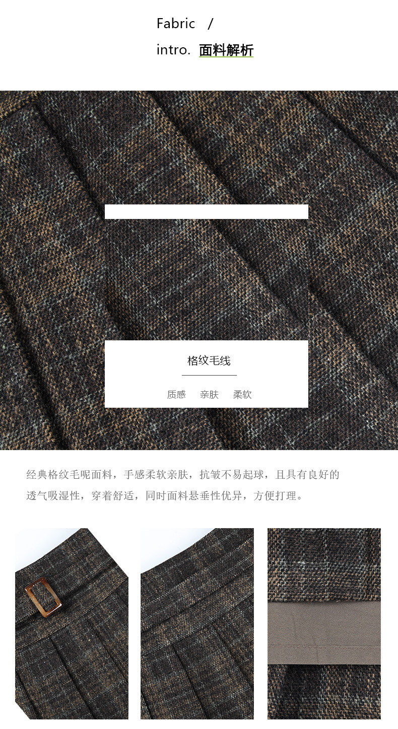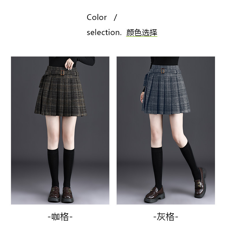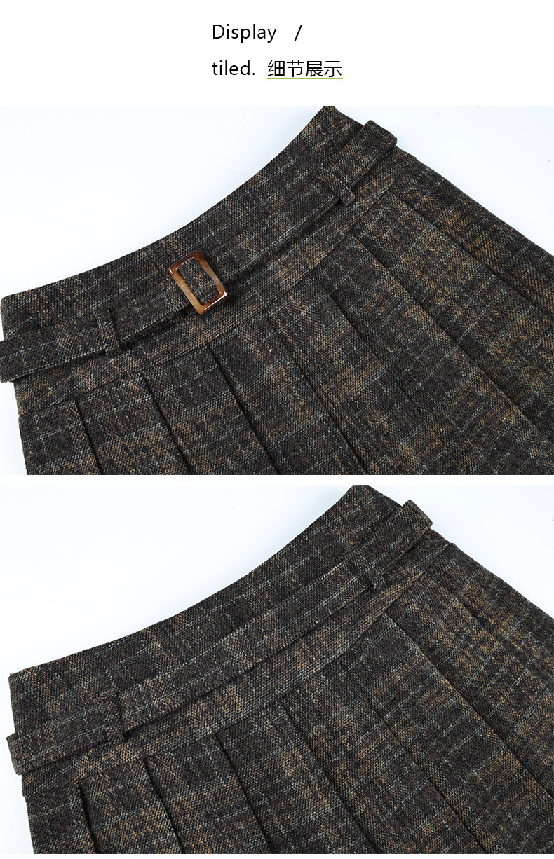 QYM 6989-Y时尚高腰A字短裙格子毛呢裙半身裙 商品图4
