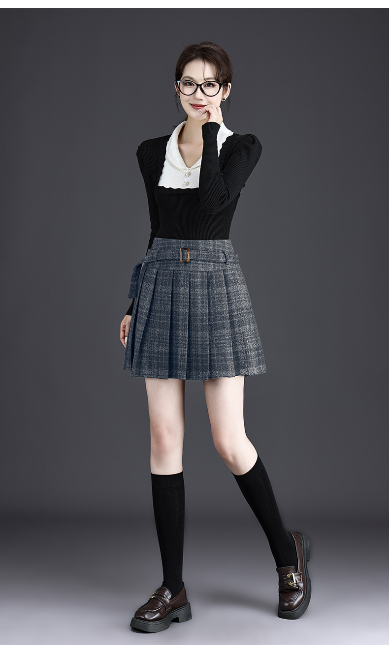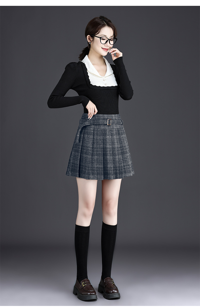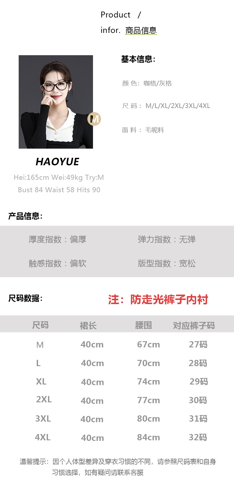 QYM 6989-Y时尚高腰A字短裙格子毛呢裙半身裙 商品图4