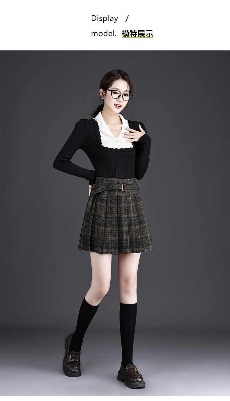QYM 6989-Y时尚高腰A字短裙格子毛呢裙半身裙 商品图2