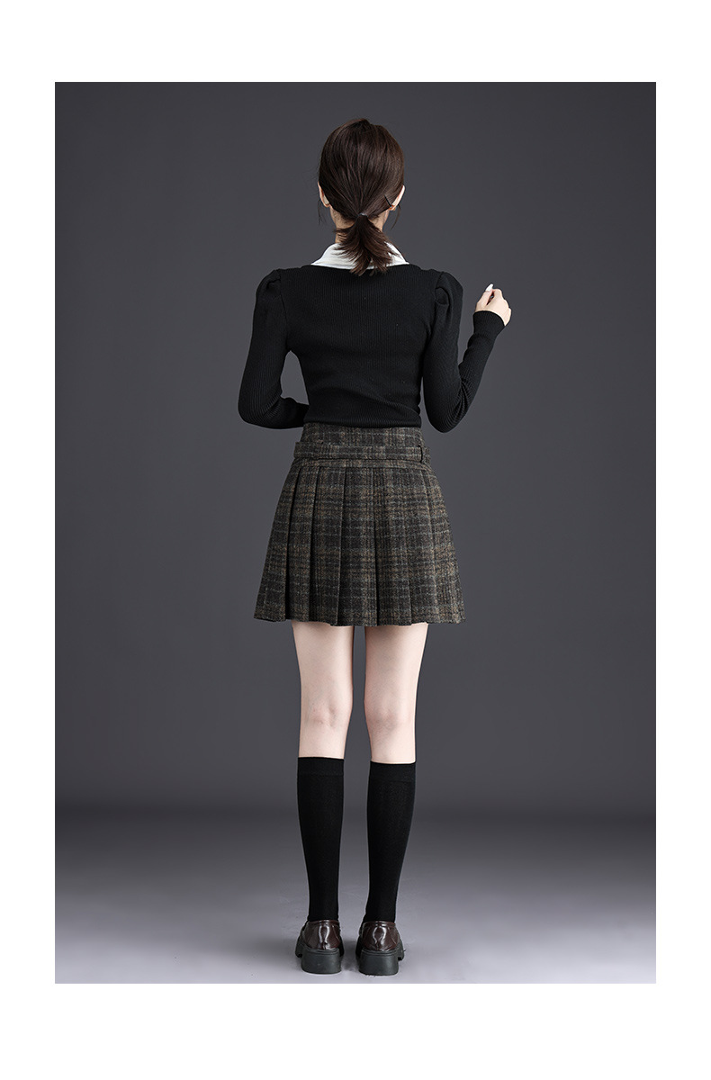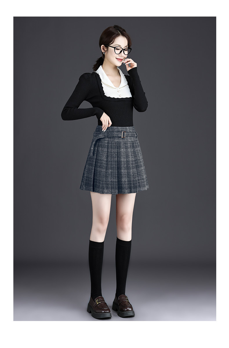 QYM 6989-Y时尚高腰A字短裙格子毛呢裙半身裙 商品图3