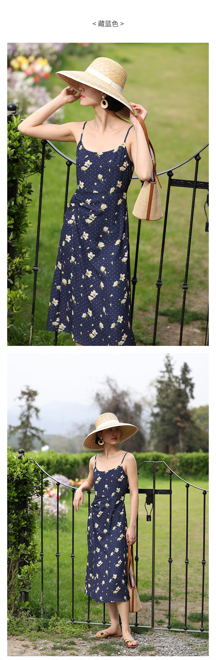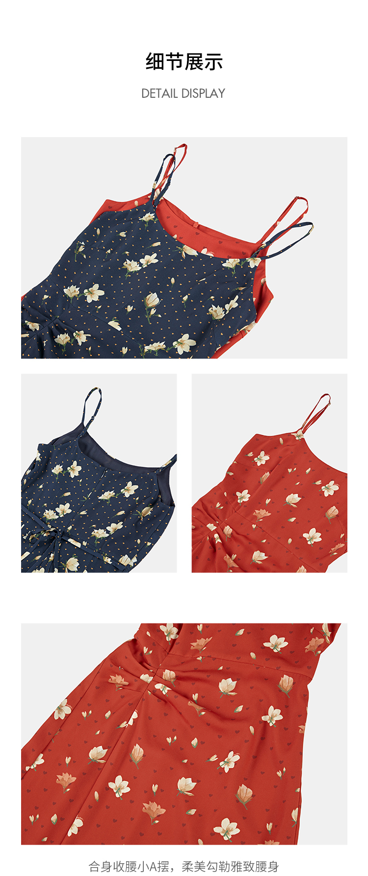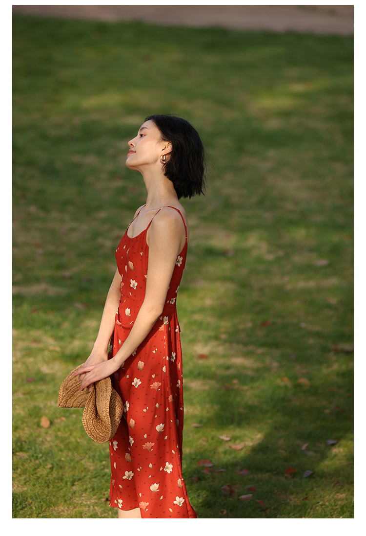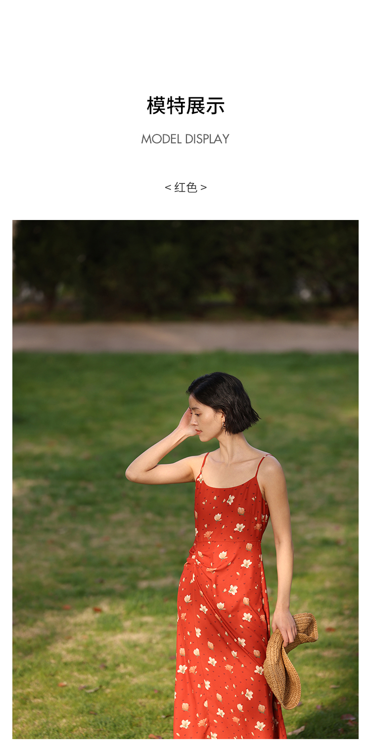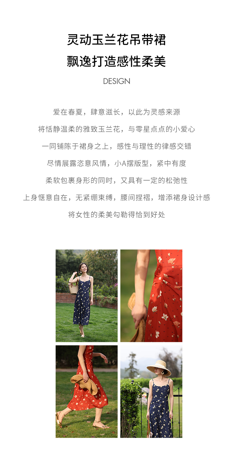 HeyDress原创玉兰花吊带连衣裙女夏季法式碎花收腰设计感浪漫裙子