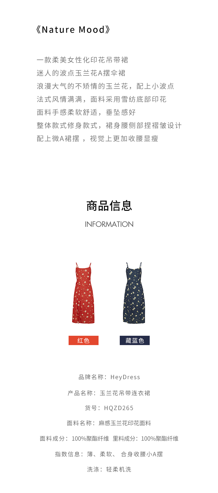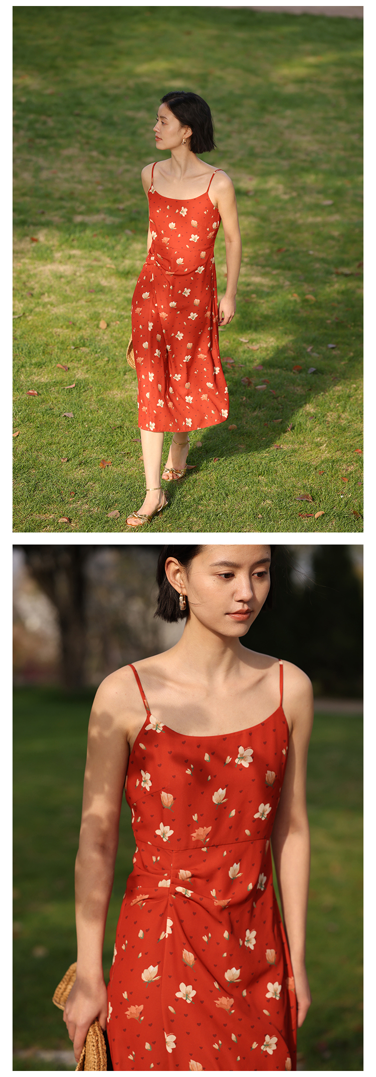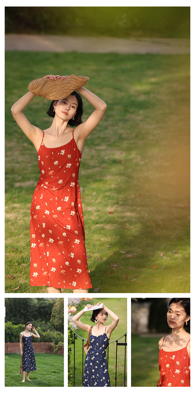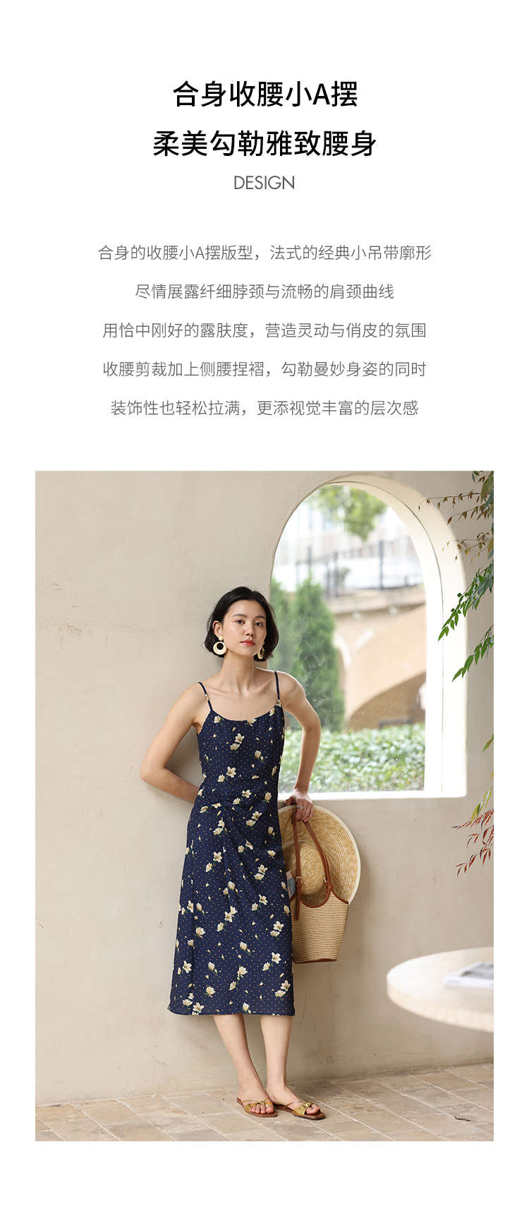 HeyDress原创玉兰花吊带连衣裙女夏季法式碎花收腰设计感浪漫裙子