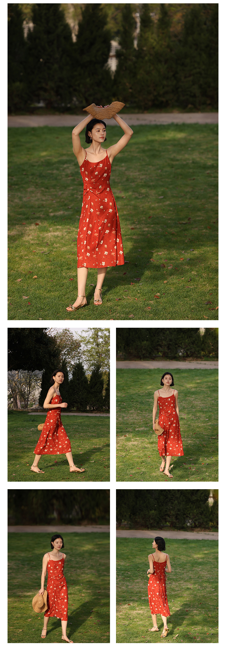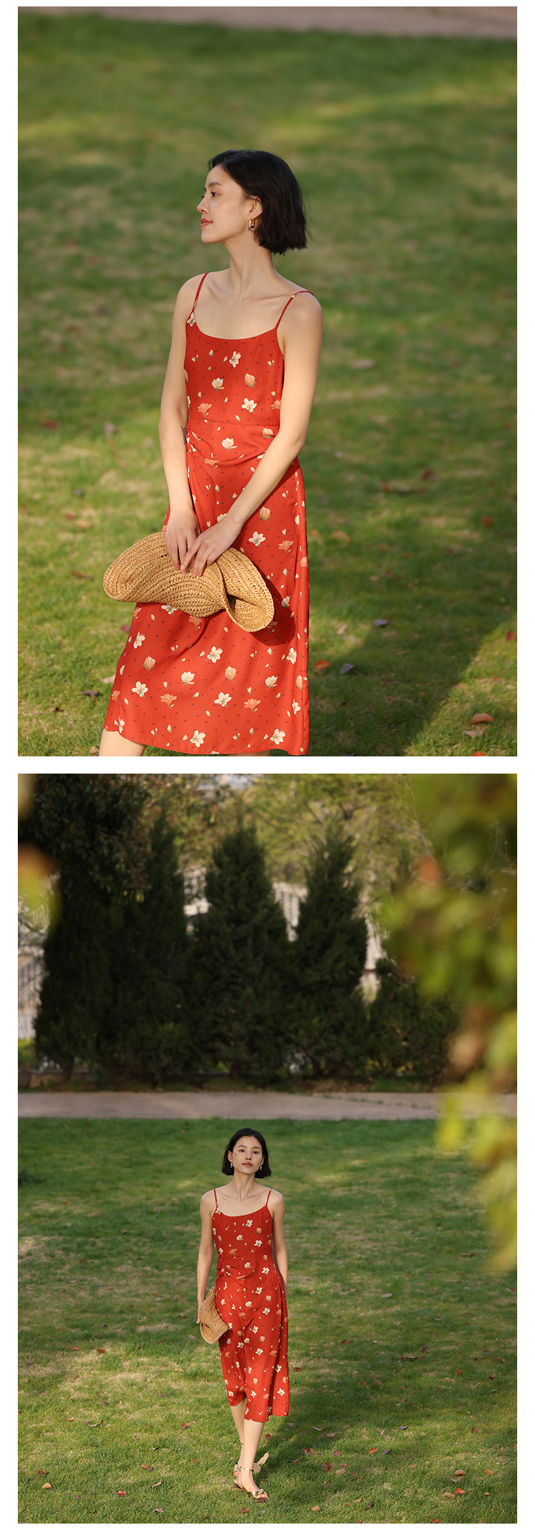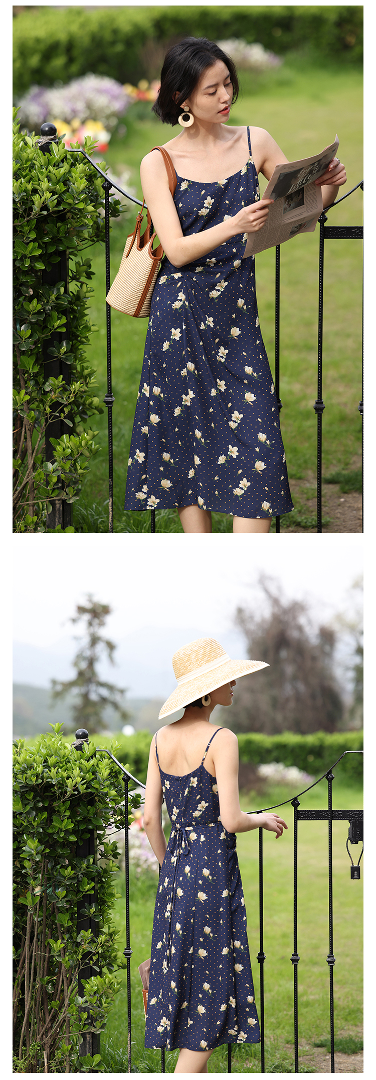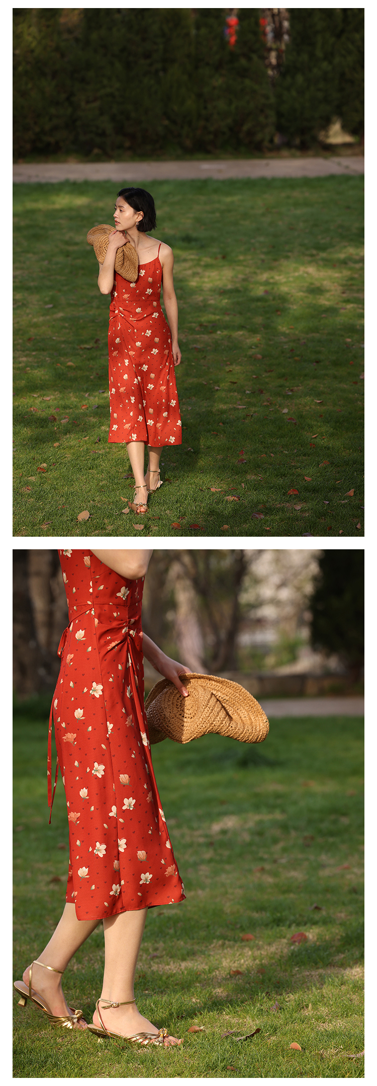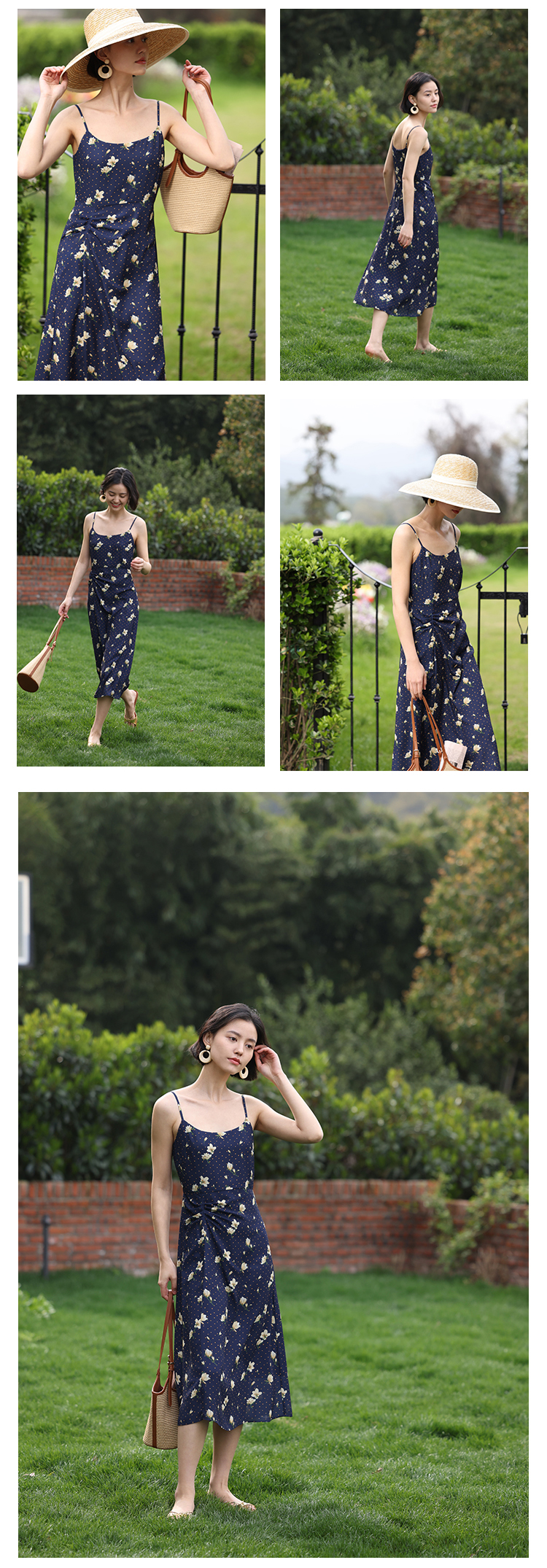 HeyDress原创玉兰花吊带连衣裙女夏季法式碎花收腰设计感浪漫裙子