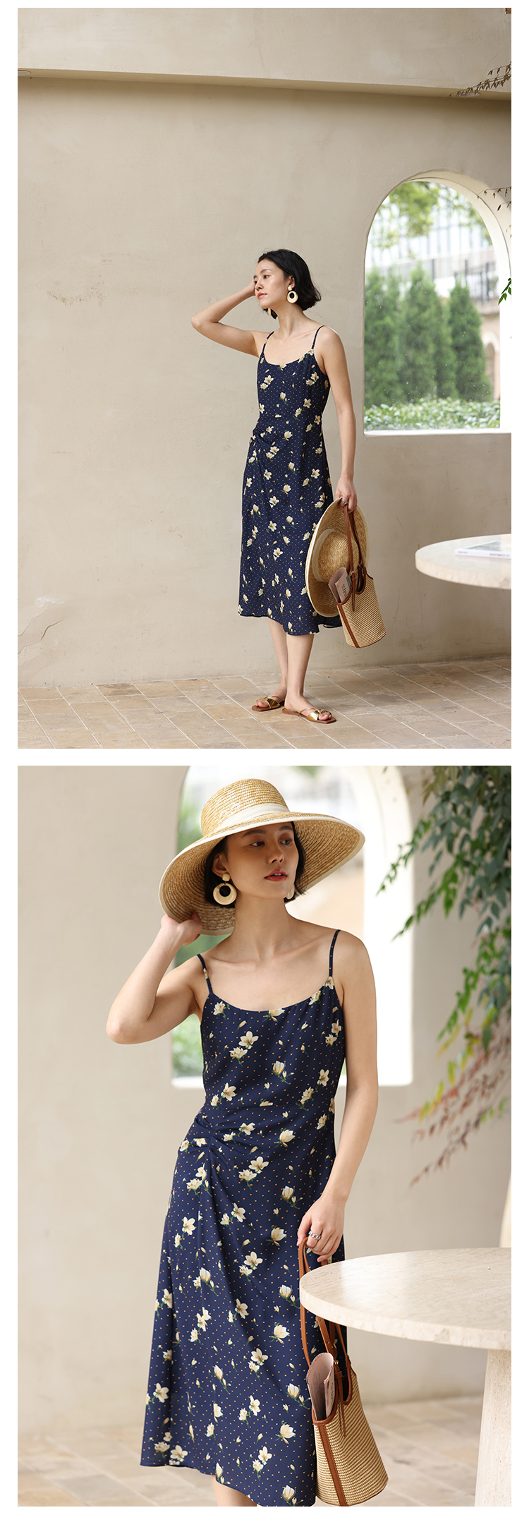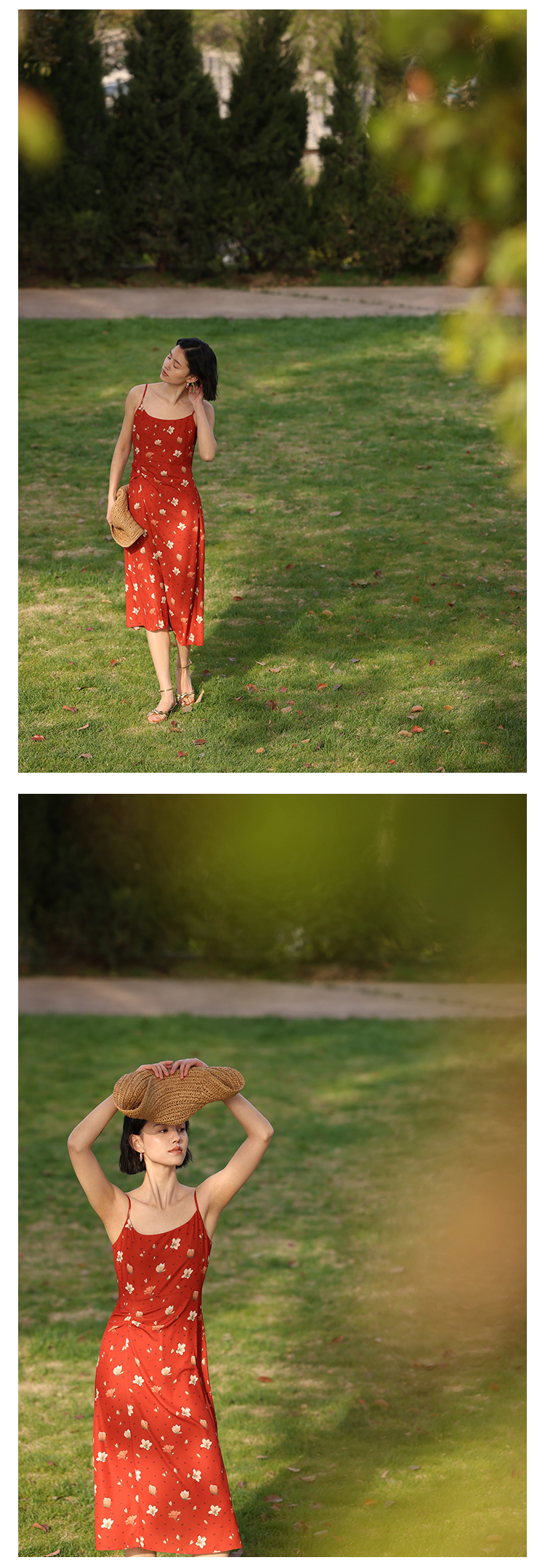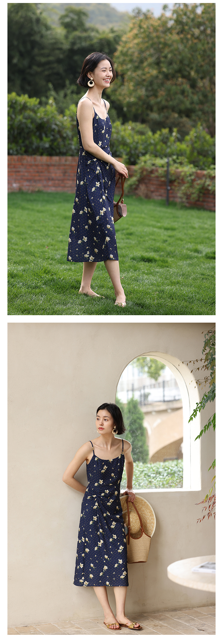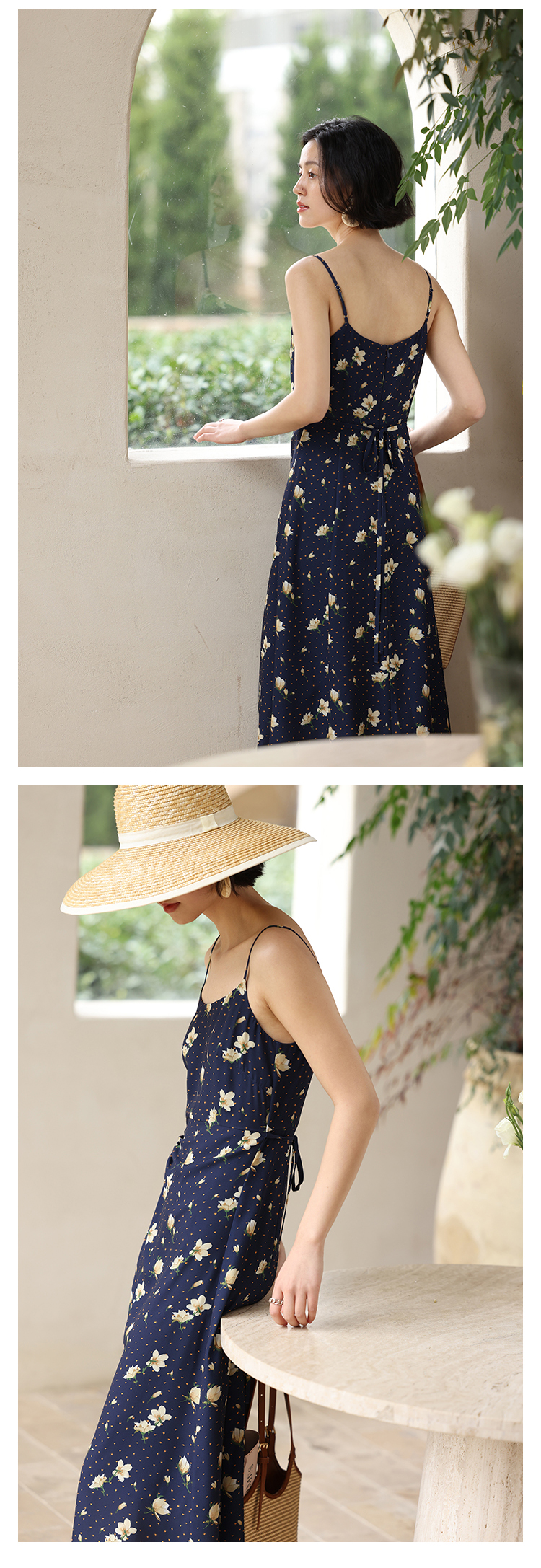 HeyDress原创玉兰花吊带连衣裙女夏季法式碎花收腰设计感浪漫裙子