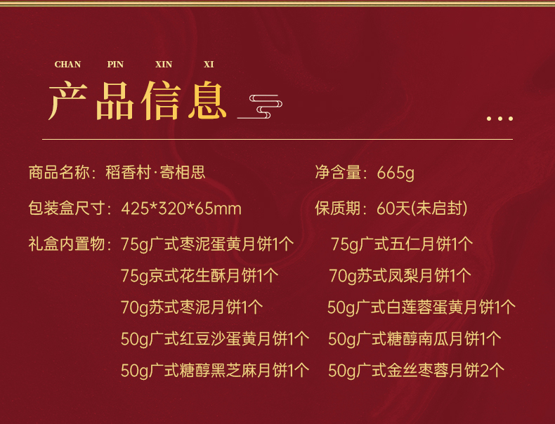 稻香村月饼礼盒装寄相思665g 苏式枣泥凤梨京式花生广式流心月饼