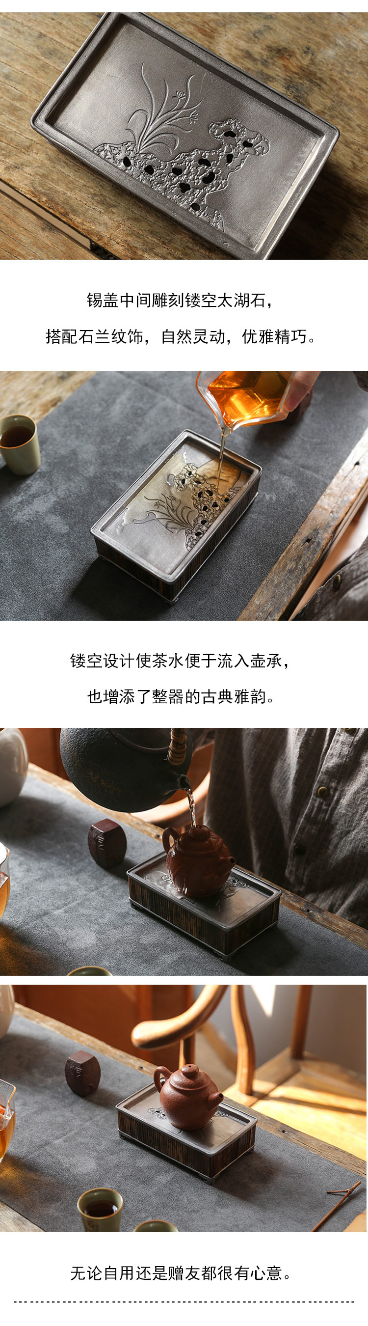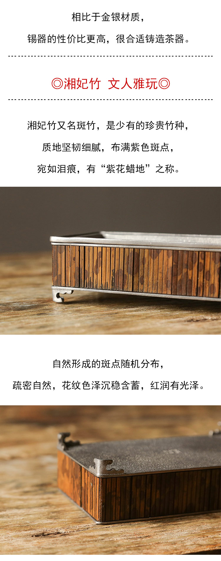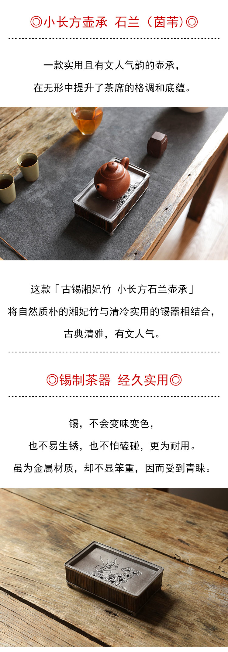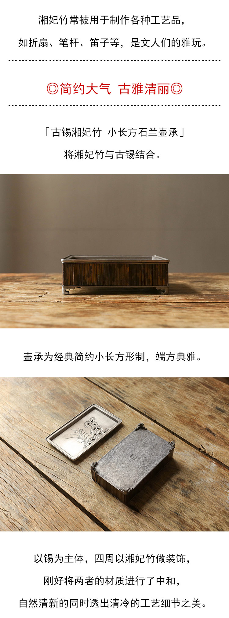 茶香记 古锡湘妃竹小长方壶承石兰(茵苇)锡制茶器湘妃竹干泡台文人雅趣优雅精致